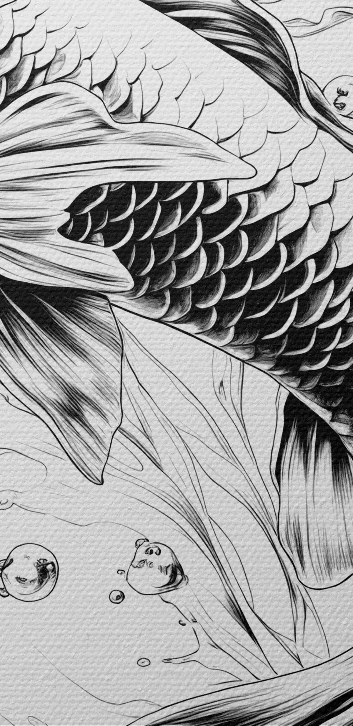 Pictură pe pânză Koi pește monocrom linie de desen Nr s39433