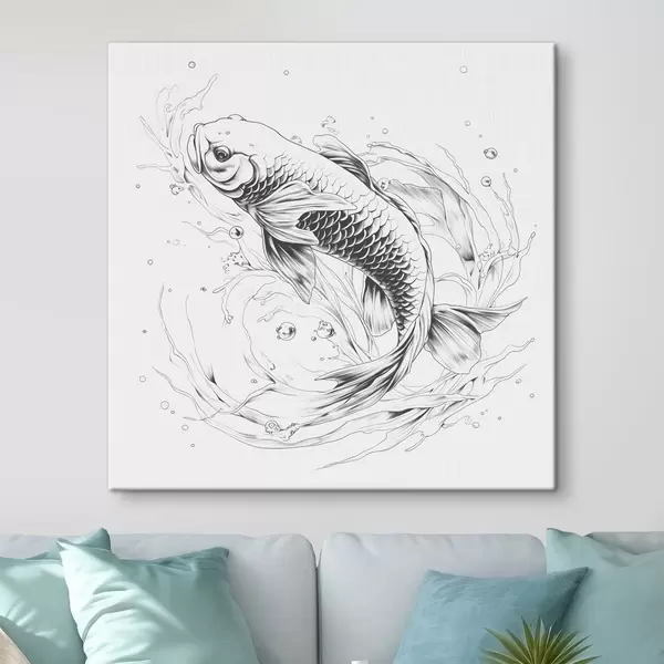 Pictură pe pânză Koi pește monocrom linie de desen Nr s39433