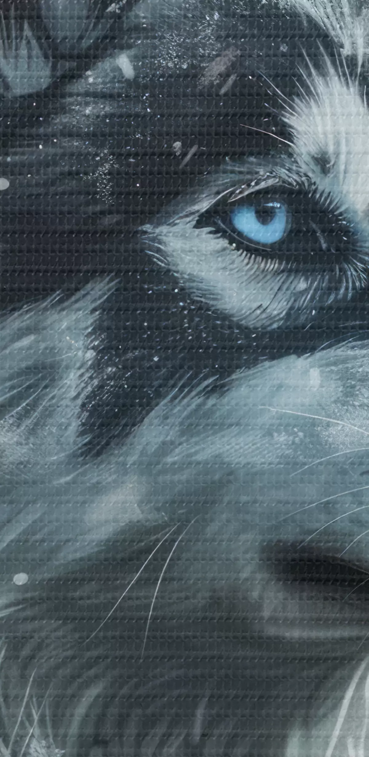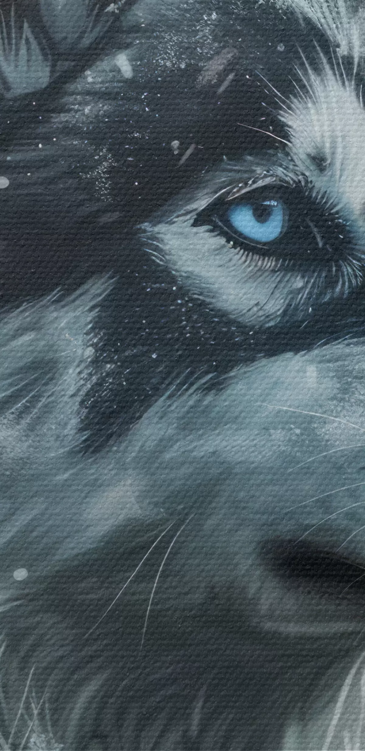 Pictură pe pânză Husky cu ochi albaștri pe fundal albastru de iarnă Nr s39462