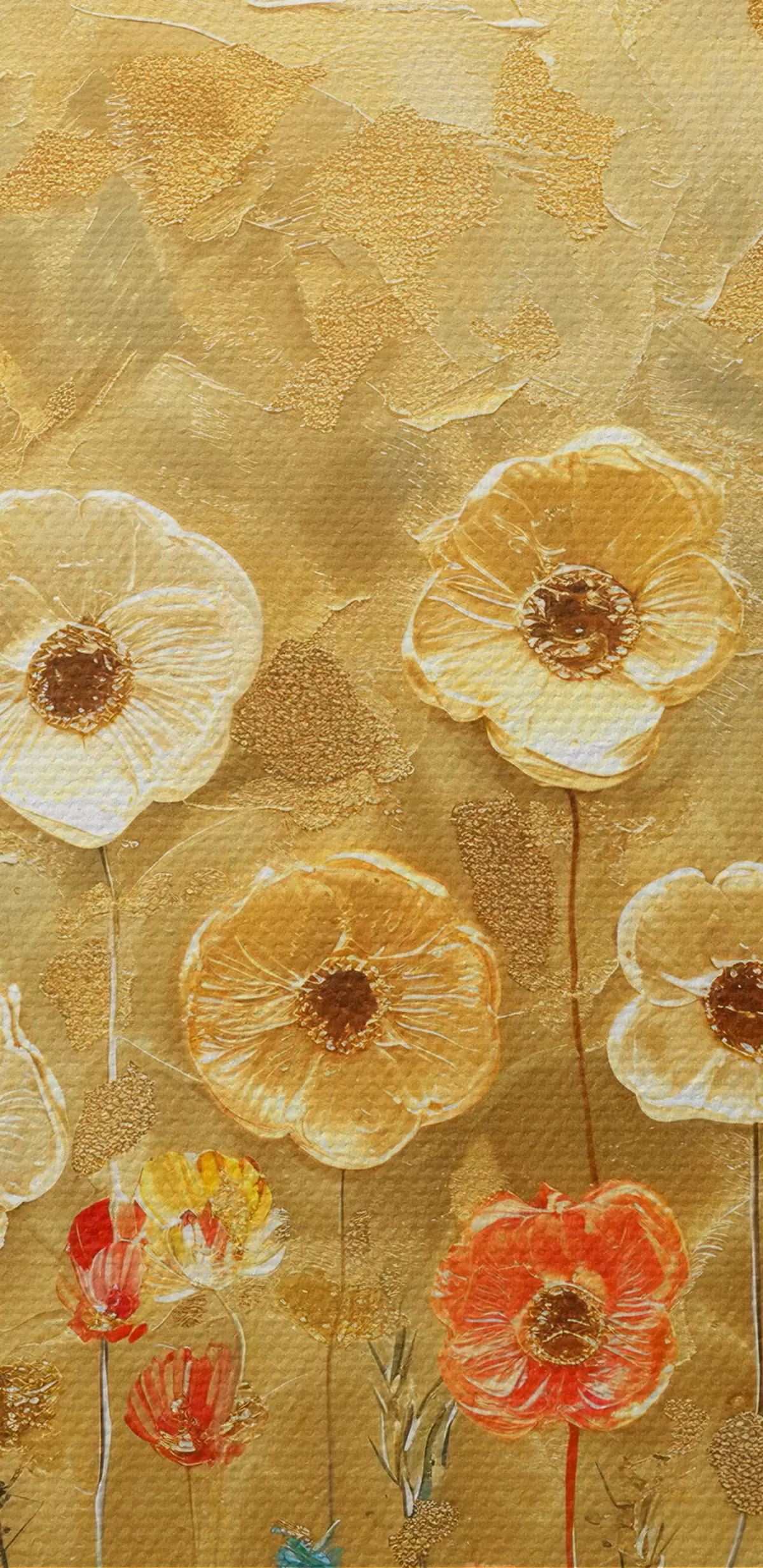 Tablouri Pajiște în stil klimt: flori delicate pastelate cu textură topită s39464