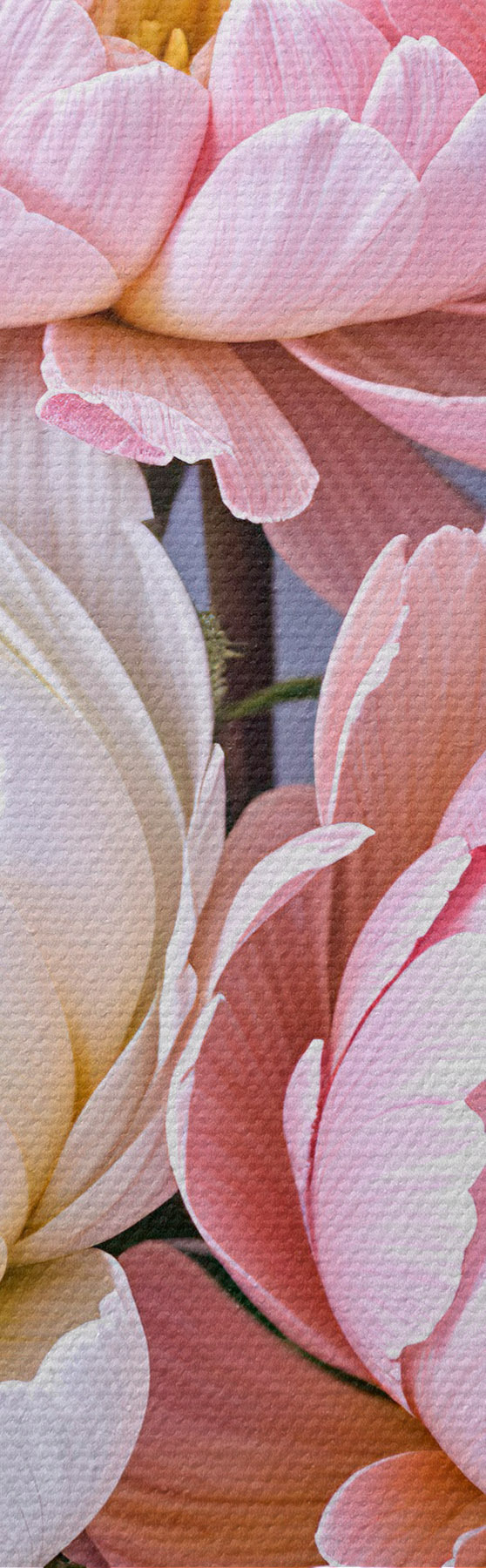 Trei tipuri de materiale sunt disponibile pentru comandă: Economic Canvas - un material dens și durabil pentru imprimarea digitală, identic cu pânza de pictor, suprafață impermeabilă, reproducere realistă a detaliilor, material cu granulație medie. Premium Canvas - textura seamănă cu cea a pânzei unui pictor (fire mici împletite). Reproducere moale, detaliată a imaginii pe o suprafață mată. Eco-Premium - țesătură 100% bumbac de înaltă calitate. Datorită fibrelor naturale de bumbac, materialul este durabil și rezistent la uzură. Reproducere excelentă a culorilor și a detaliilor.