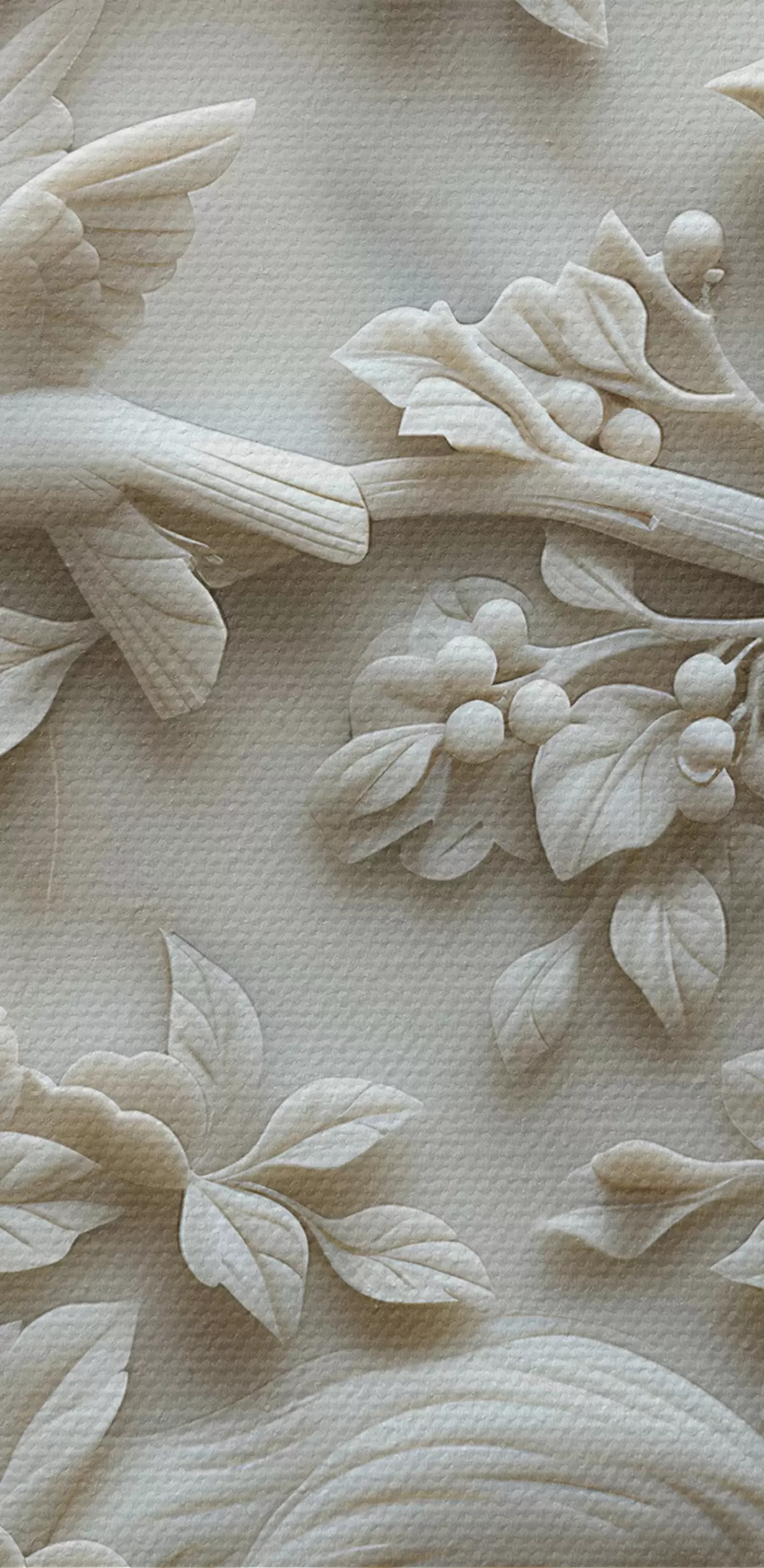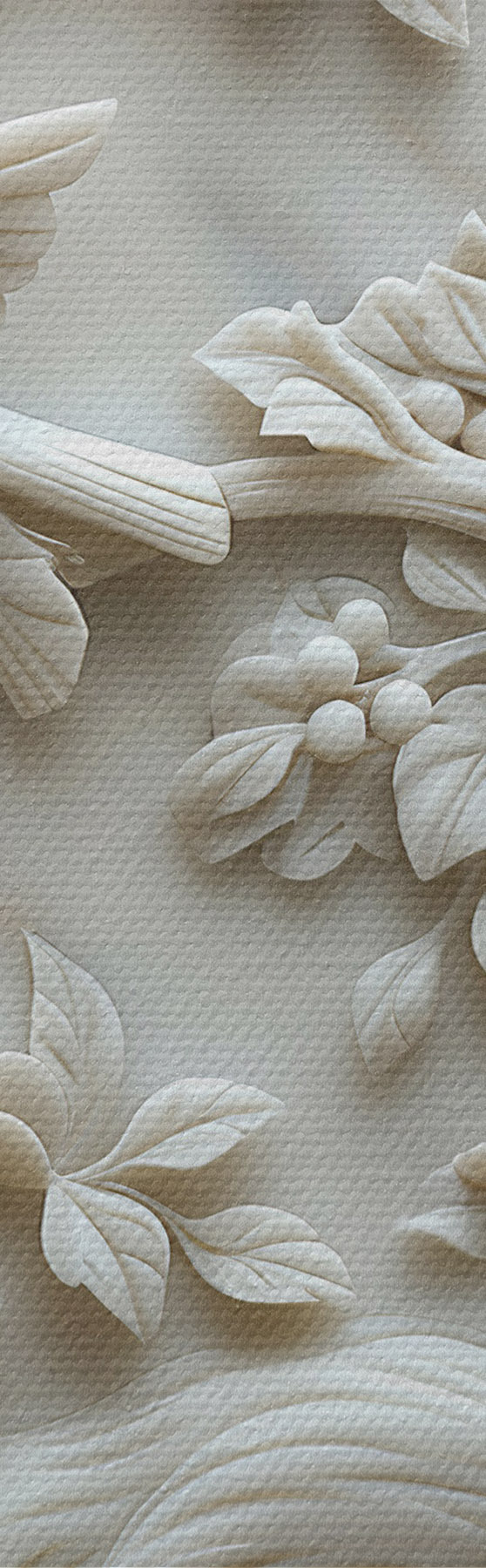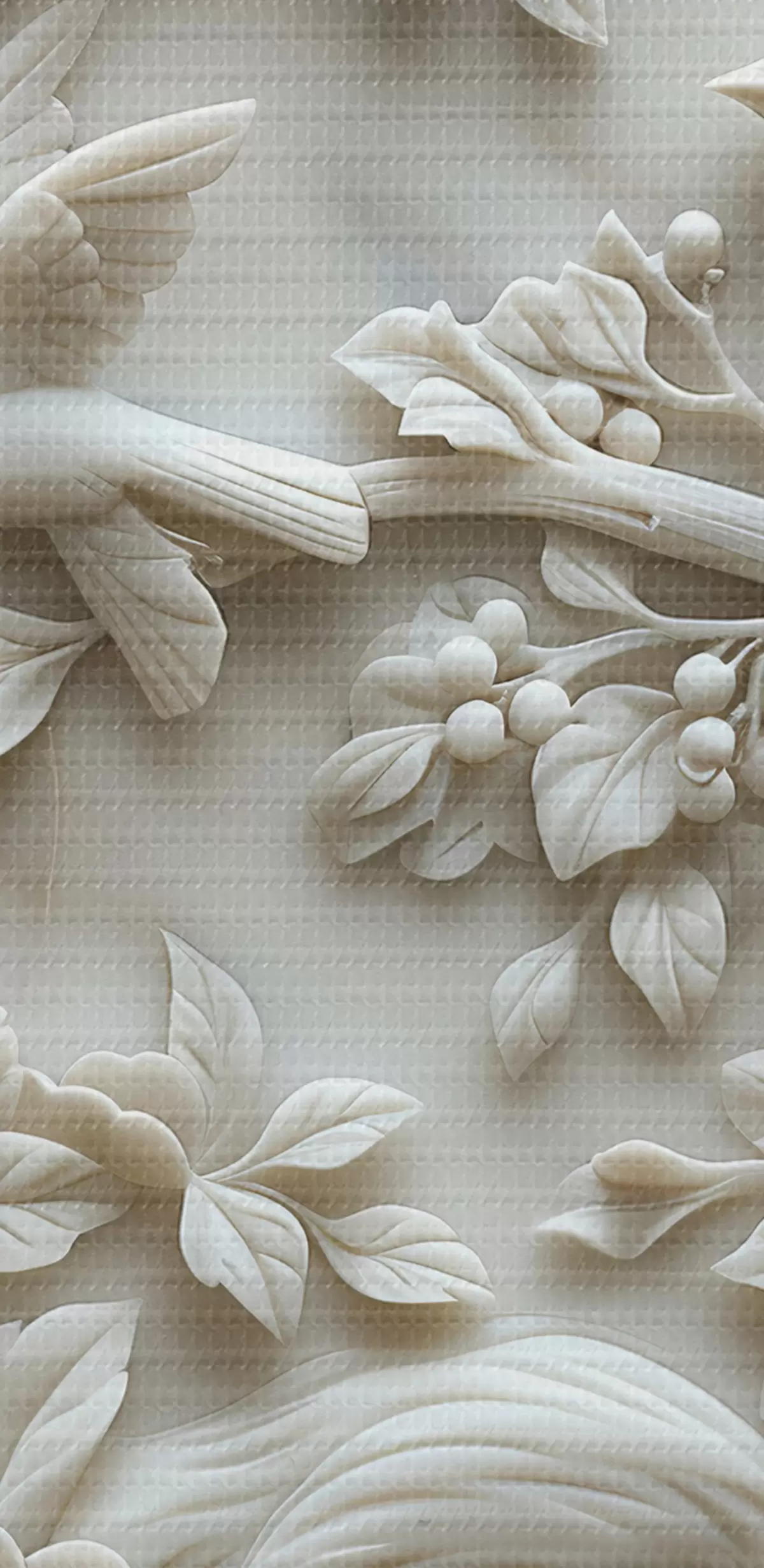 Tablouri Grădină din marmură albă cu basorelief de păsări și flori s39728