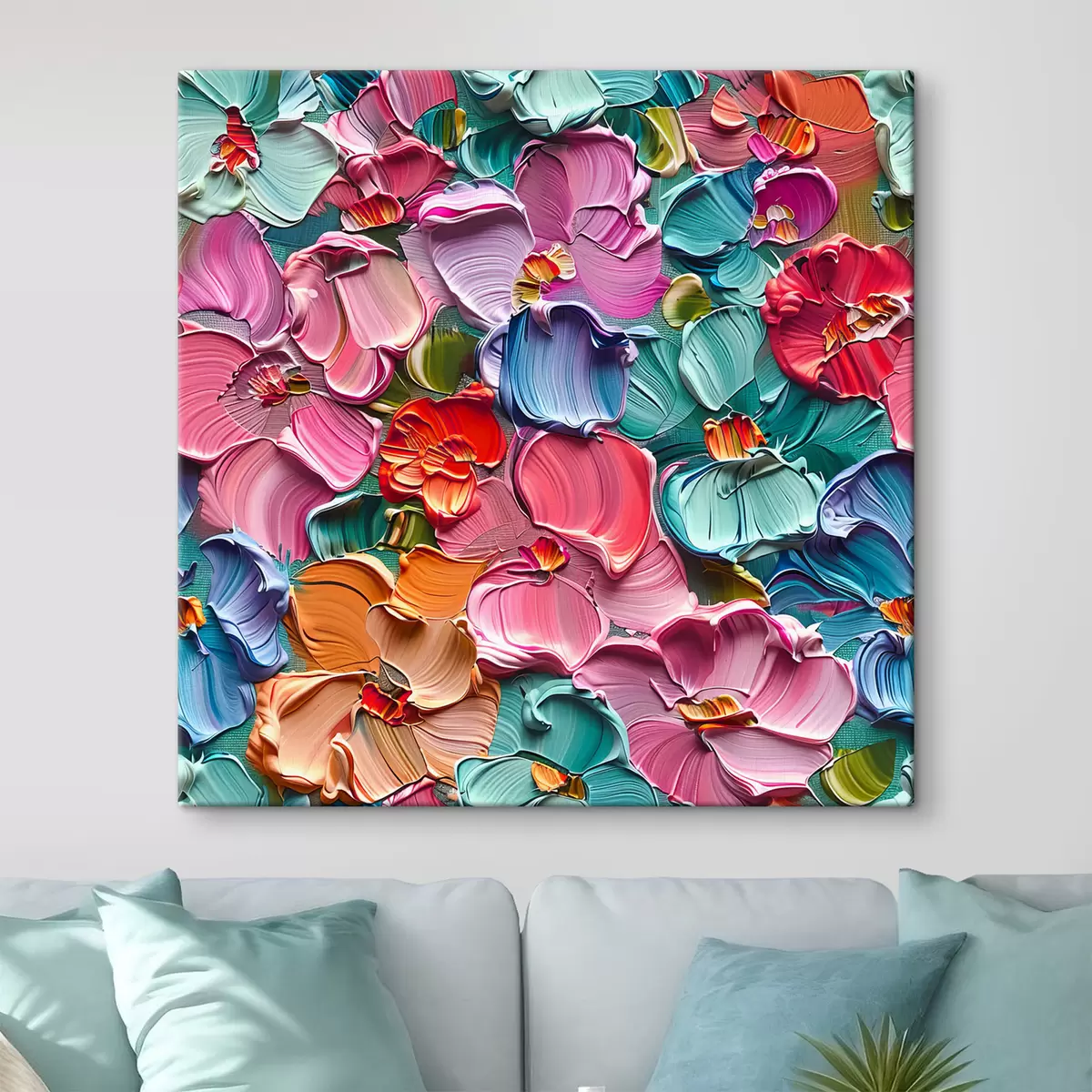 Pictură pe pânză Compoziție acrilică florală cu tușe de pensulă" Nr s39736