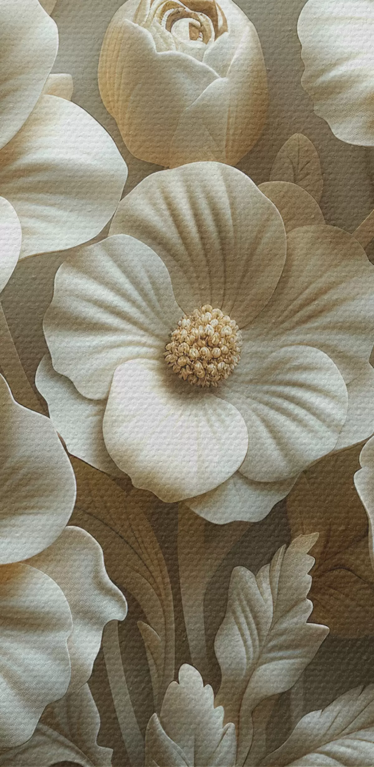 Tablouri 3d basorelief flori albe pe fundal de marmură cu cadru s39739