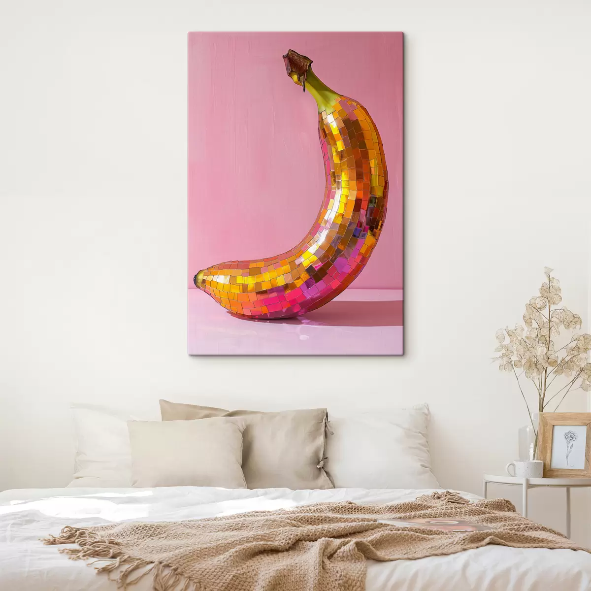 Tablouri Ulei pictat banay disco ball cu lumina pastel roz fundal s39766