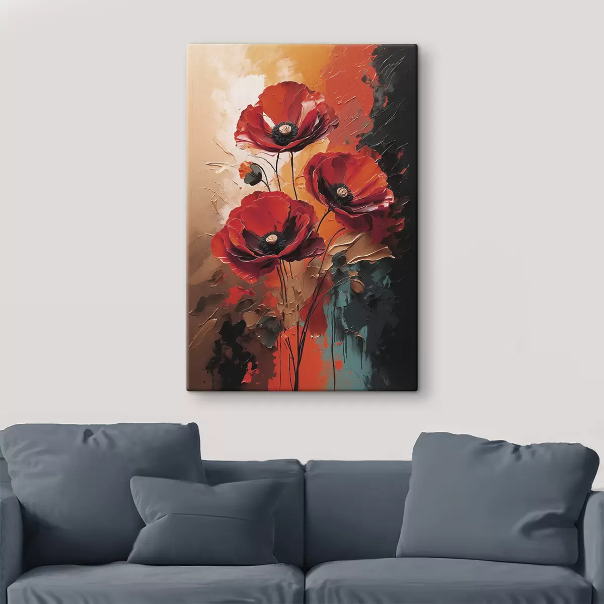 Pictură pe pânză Poppies pe fundal abstract Nr s39845
