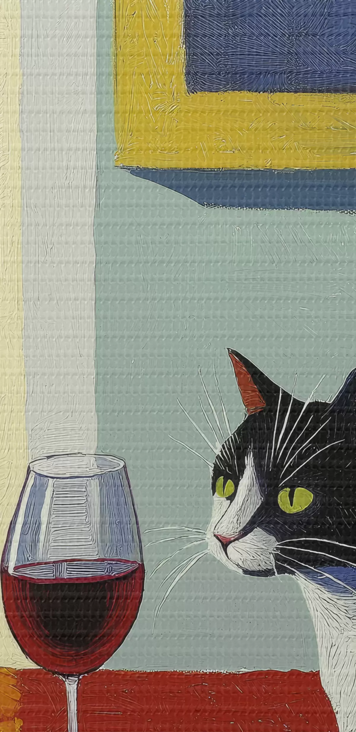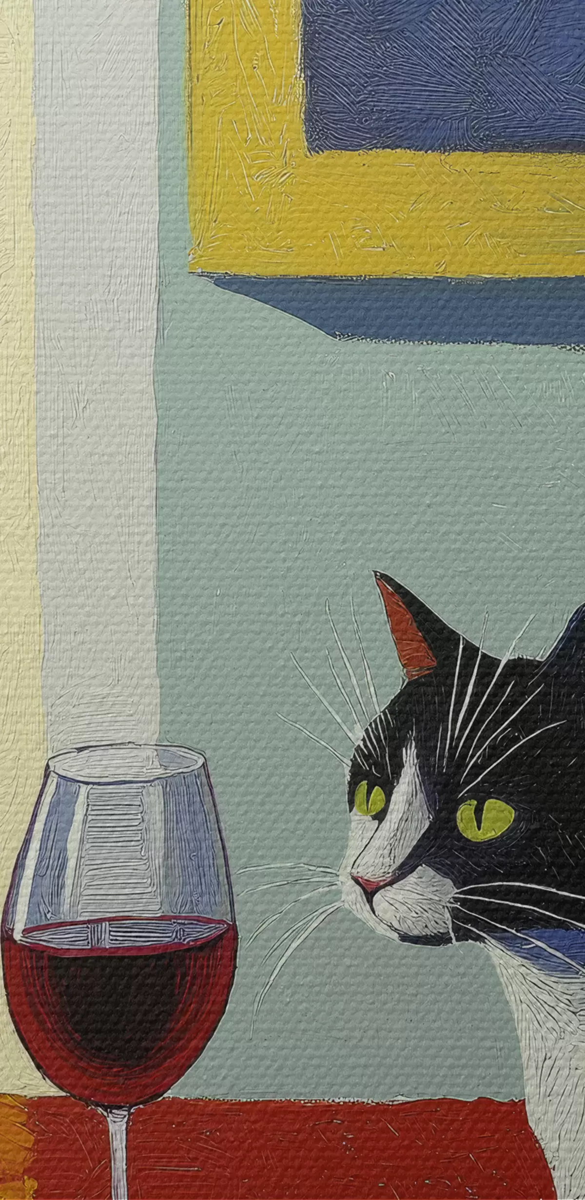 Pictură pe pânză O pisică și un pahar de vin Nr s39913