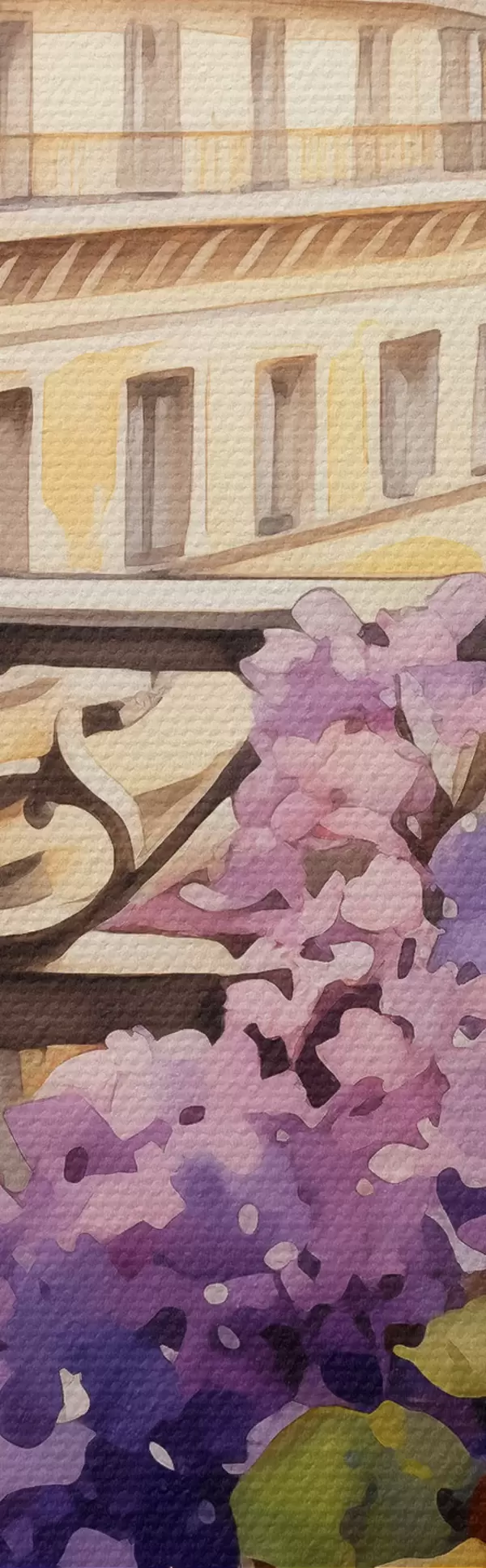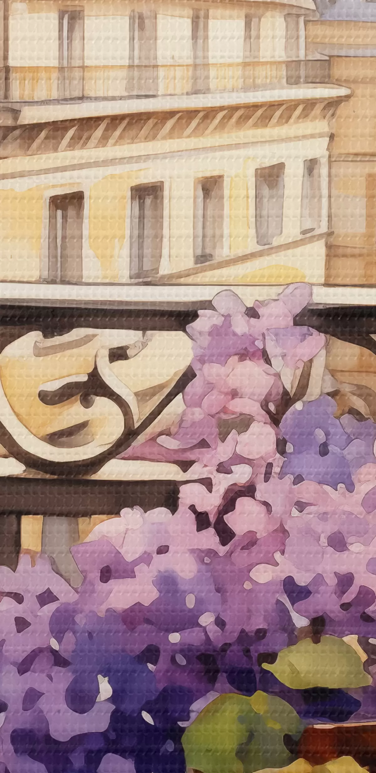 Pictură pe pânză Violete într-o oală pe un balcon din Paris acuarelă Nr s39931