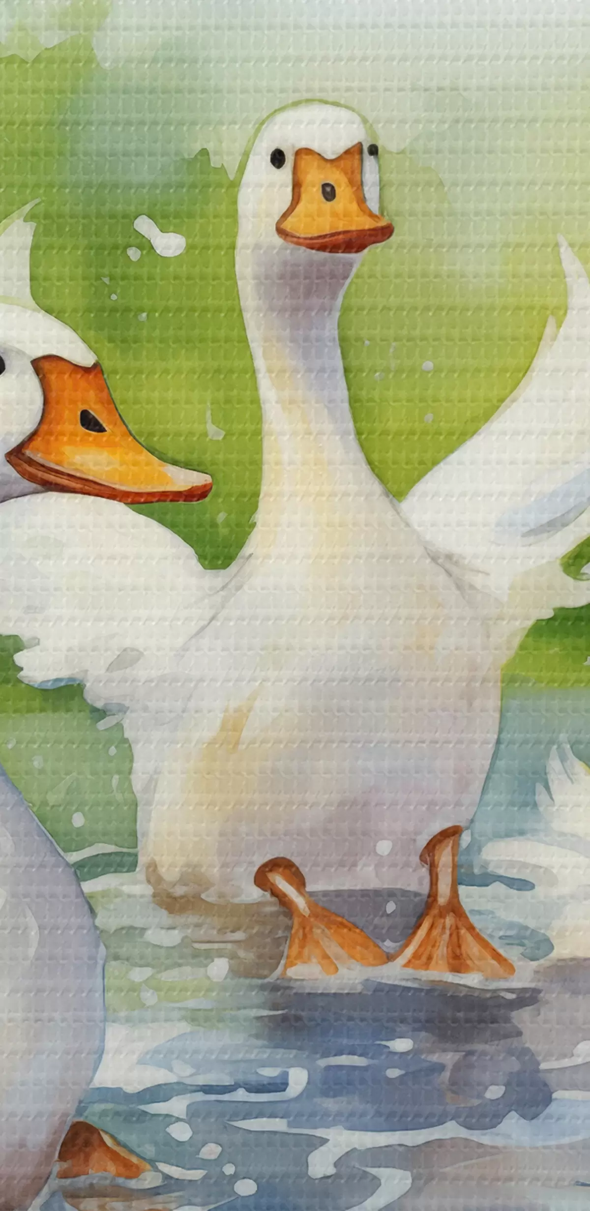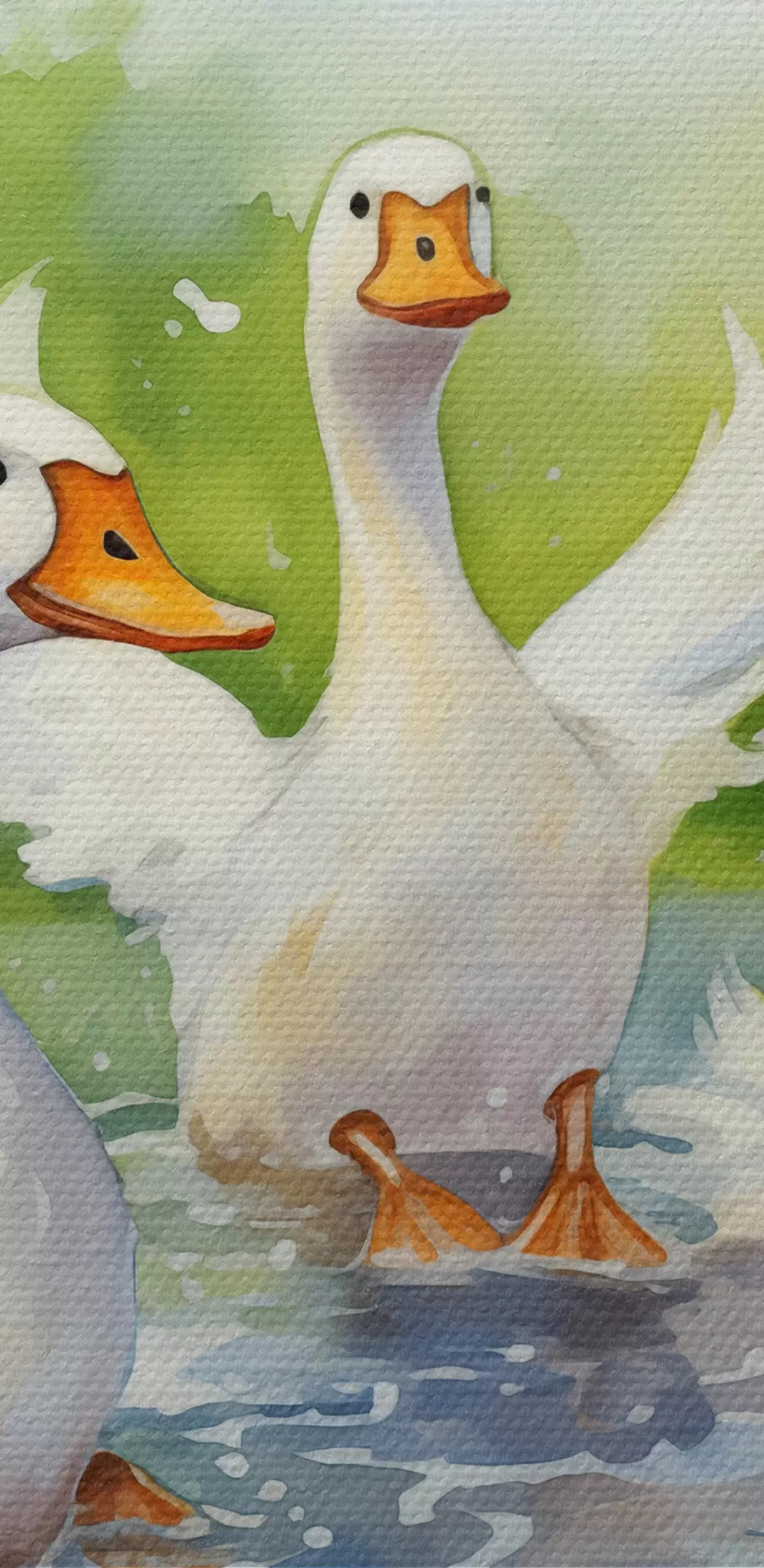 Pictură pe pânză Gâște albe scăldat într-un iaz pictura acuarelă Nr s39939