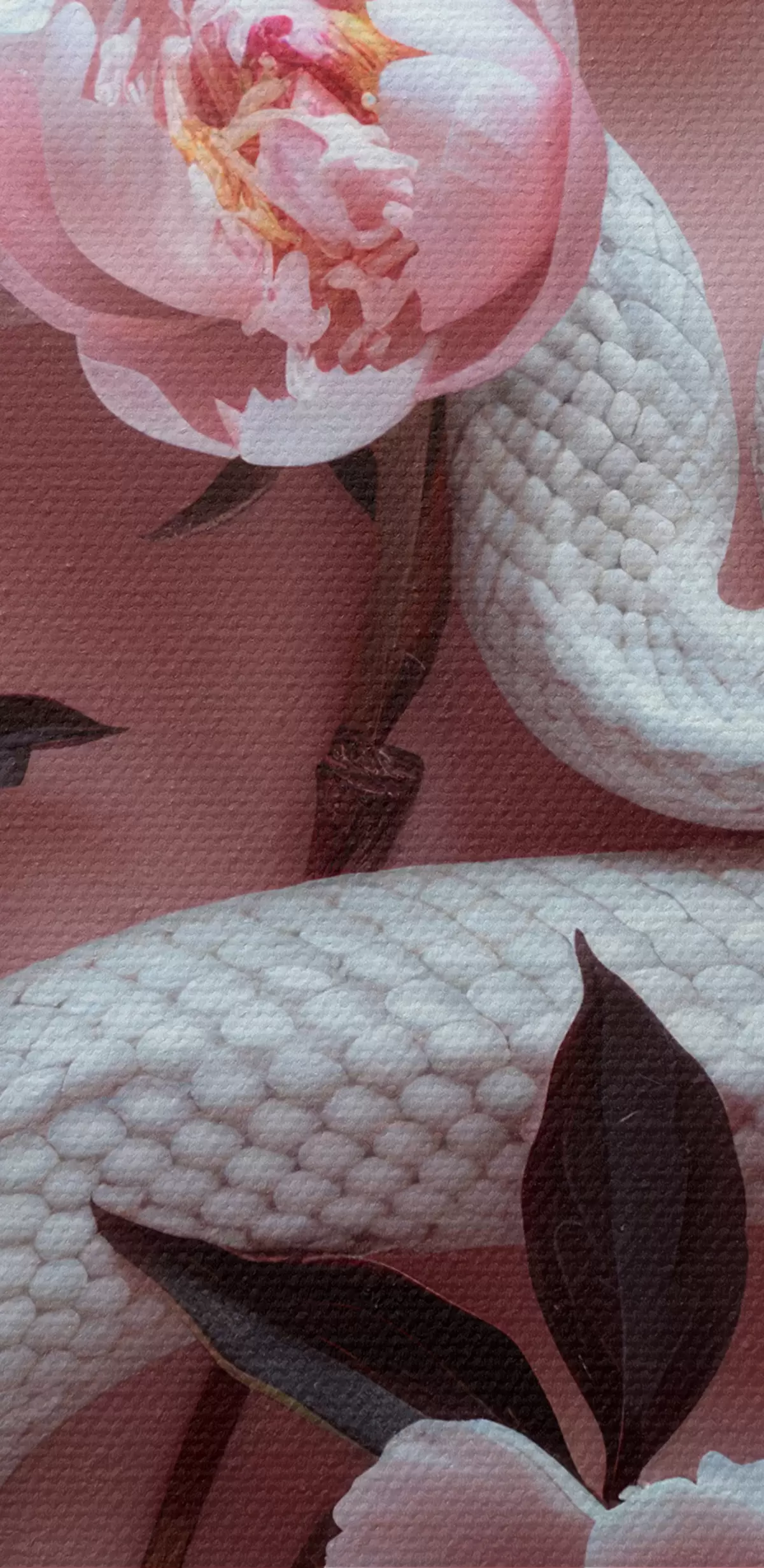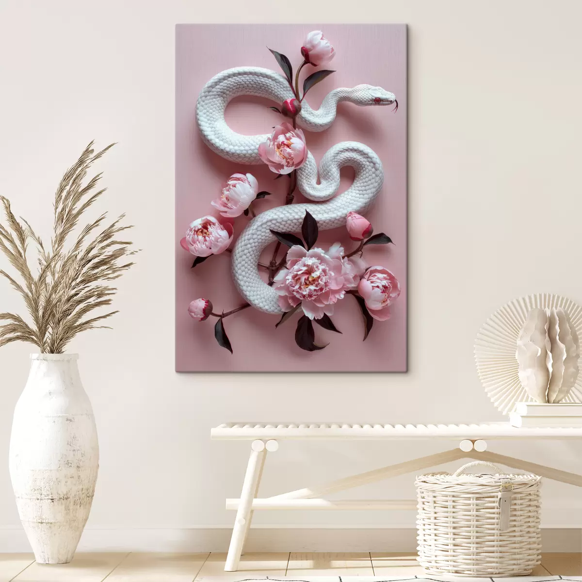 Pictură pe pânză Peonii și șarpe alb Nr s39942