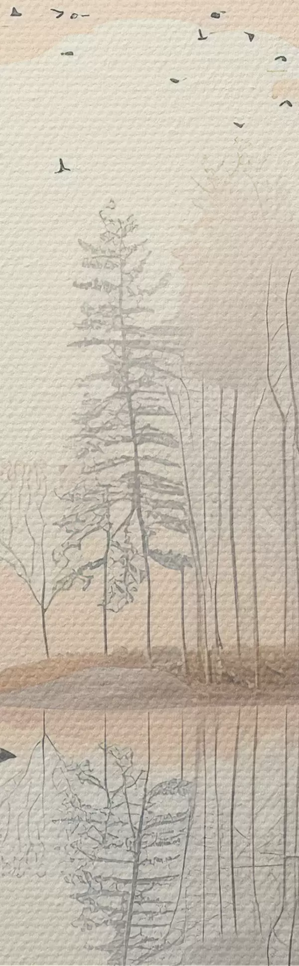 Tablouri Frumos peisaj natural, iaz și copaci, animale sălbatice, culori pastelate moi s39980