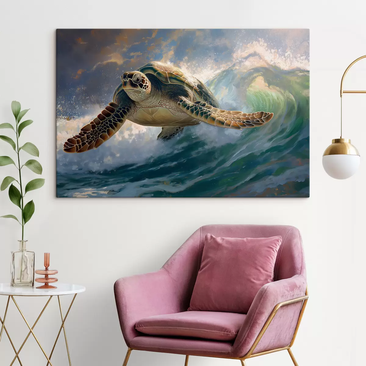 Pictură pe pânză Țestoasă, apă, verde, albastru Nr s40001