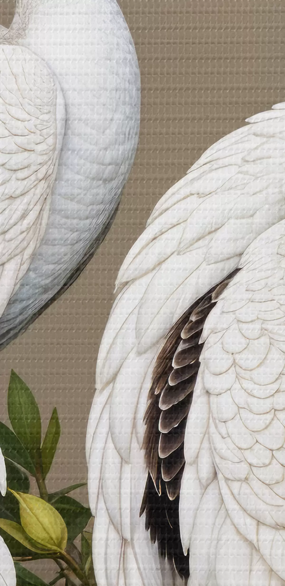 Tablouri Doi păuni albi cu pene ornamentate cocoțați pe o ramură cu flori s40022