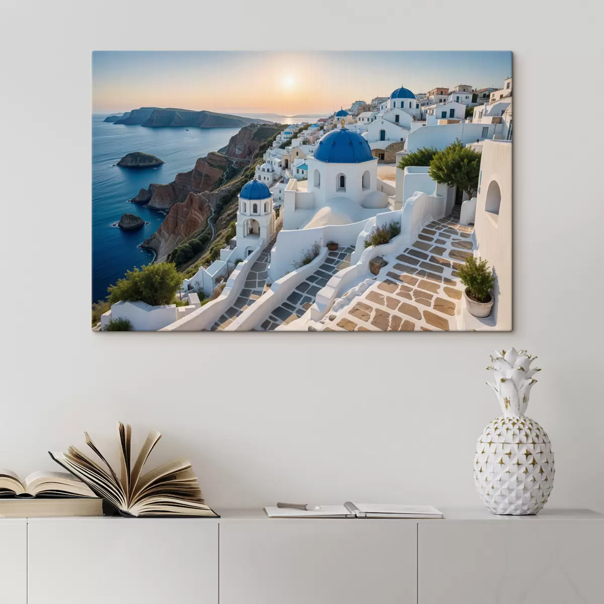 Pictură pe pânză Insula Santorini, Grecia. Orașul este construit pe un deal cu vedere la Marea Egee Nr s40160