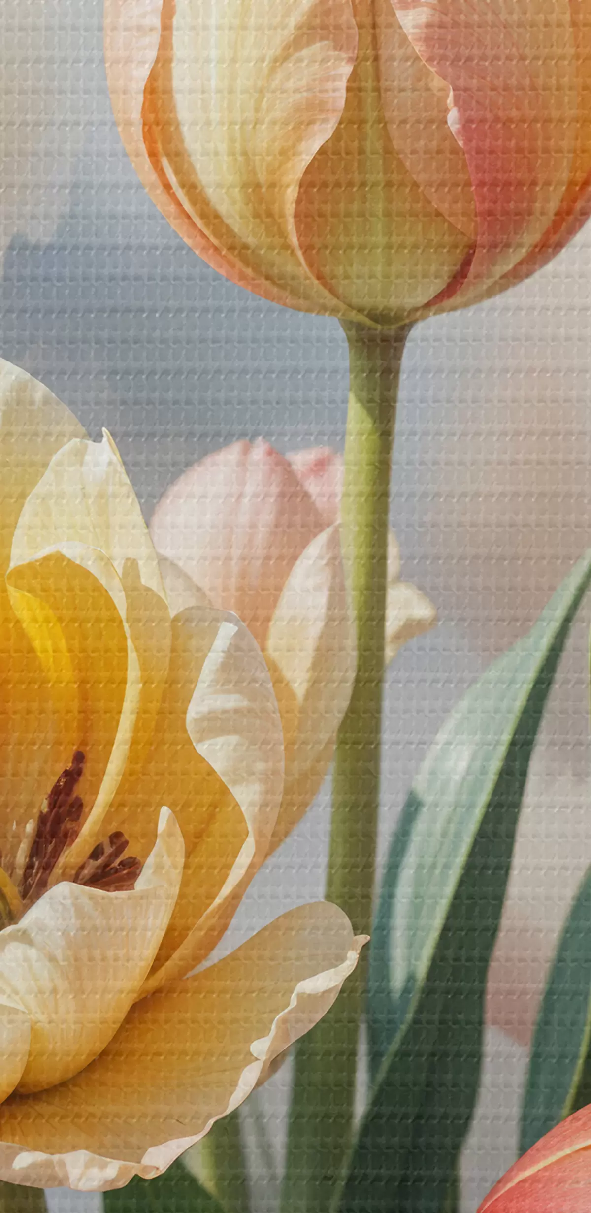 Tablouri Lalele colorate în diferite nuanțe de roșu, portocaliu și galben pe un fundal deschis s40167