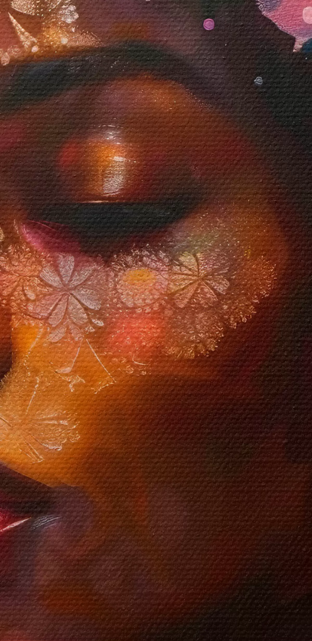 Țesătura fină a firelor de pe această pânză seamănă cu suprafața pânzelor artiștilor profesioniști.