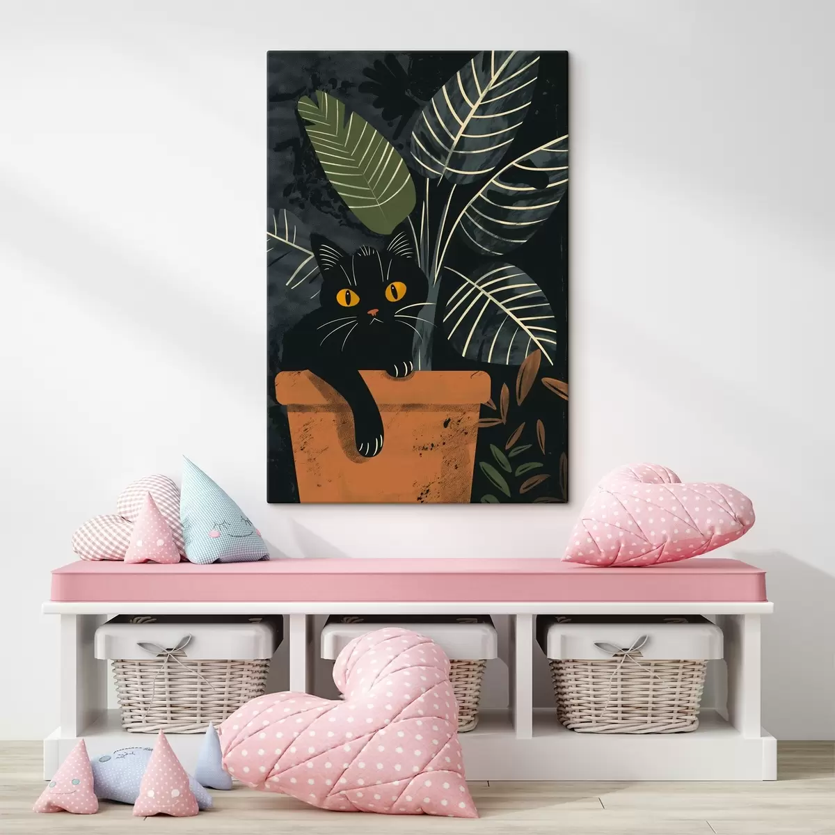 Pictură pe pânză Pisică într-o oală cu o floare Nr s40268