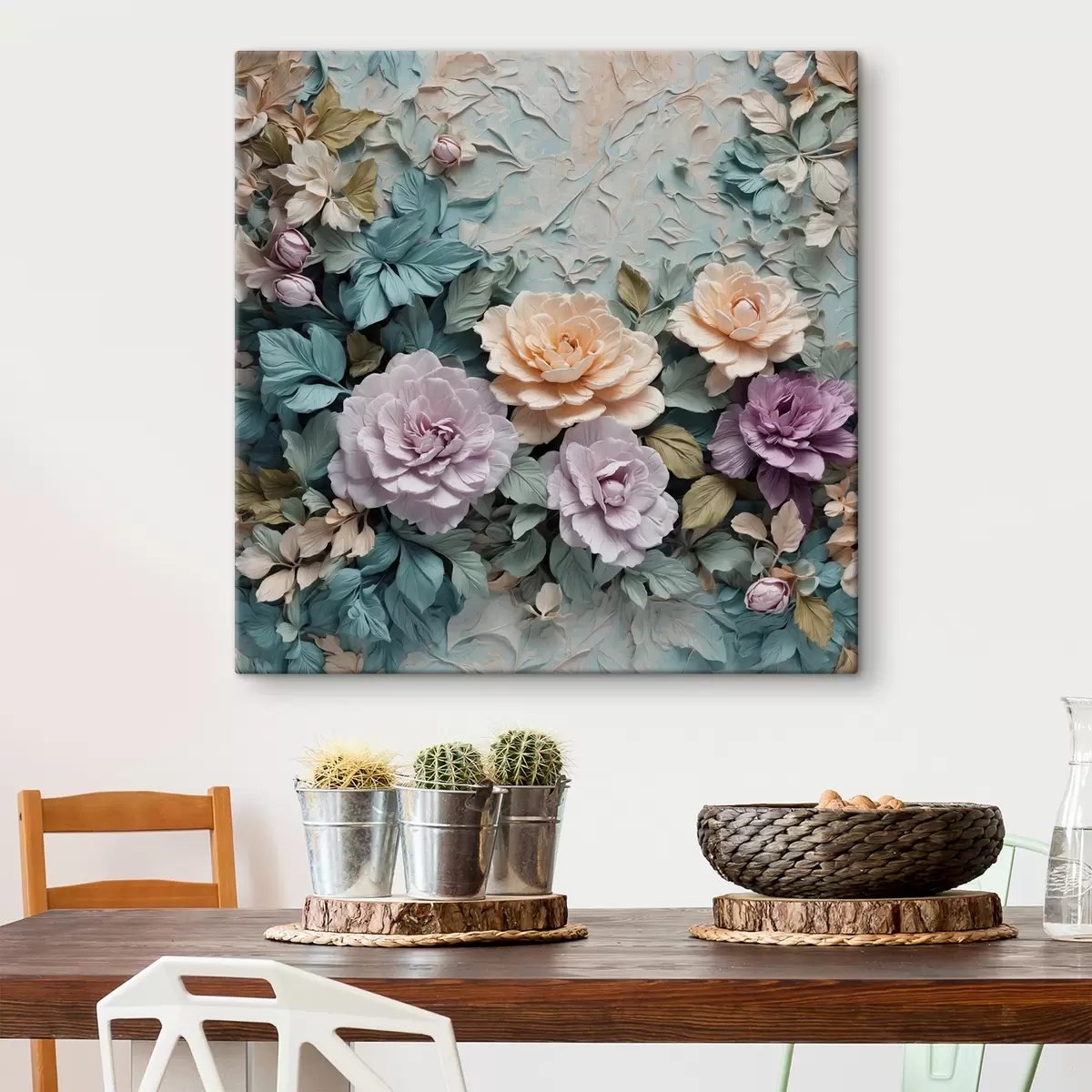 Pictură pe pânză Flori și frunze pe fundal abstract Nr s40332