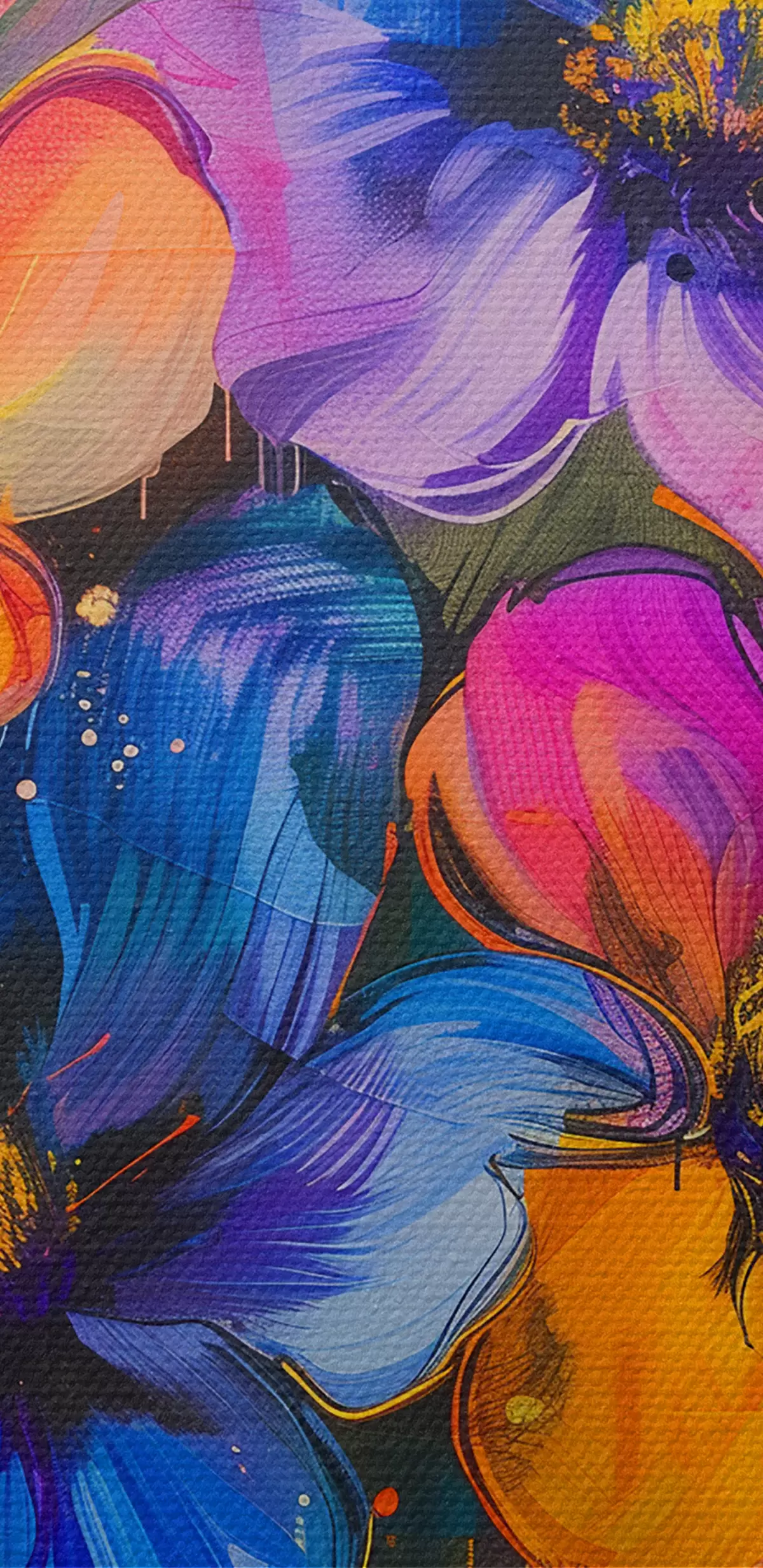 Trei tipuri de materiale sunt disponibile pentru comandă: Economic Canvas - un material dens și durabil pentru imprimarea digitală, identic cu pânza de pictor, suprafață impermeabilă, reproducere realistă a detaliilor, material cu granulație medie. Premium Canvas - textura seamănă cu cea a pânzei unui pictor (fire mici împletite). Reproducere moale, detaliată a imaginii pe o suprafață mată. Eco-Premium - țesătură 100% bumbac de înaltă calitate. Datorită fibrelor naturale de bumbac, materialul este durabil și rezistent la uzură. Reproducere excelentă a culorilor și a detaliilor.