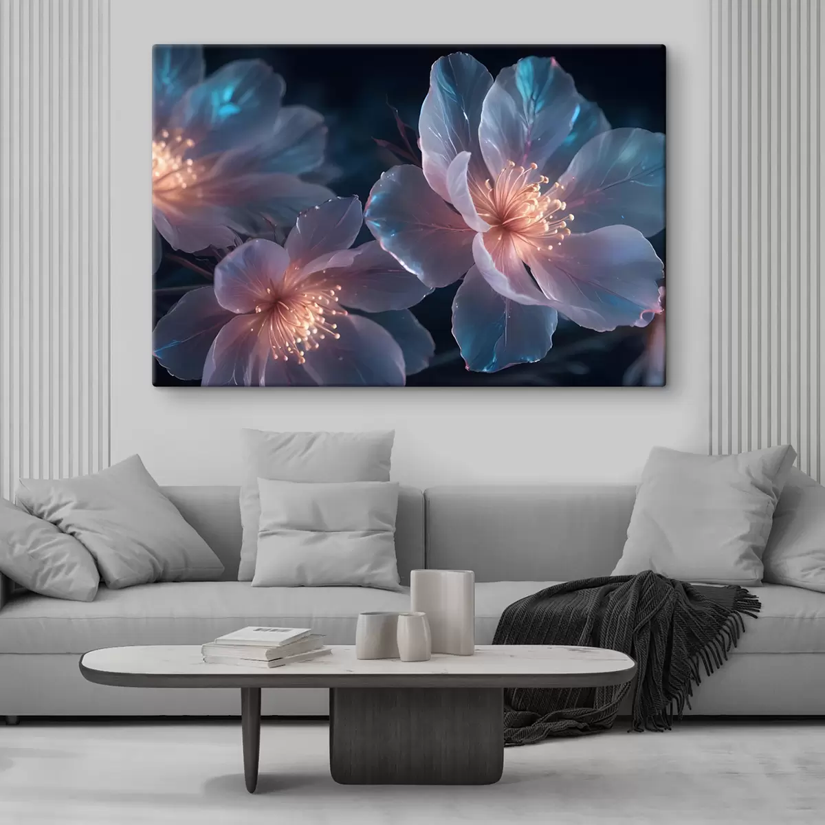 Pictură pe pânză Flori delicate roz și albe cu fundal întunecat moale, neclar Nr s40385
