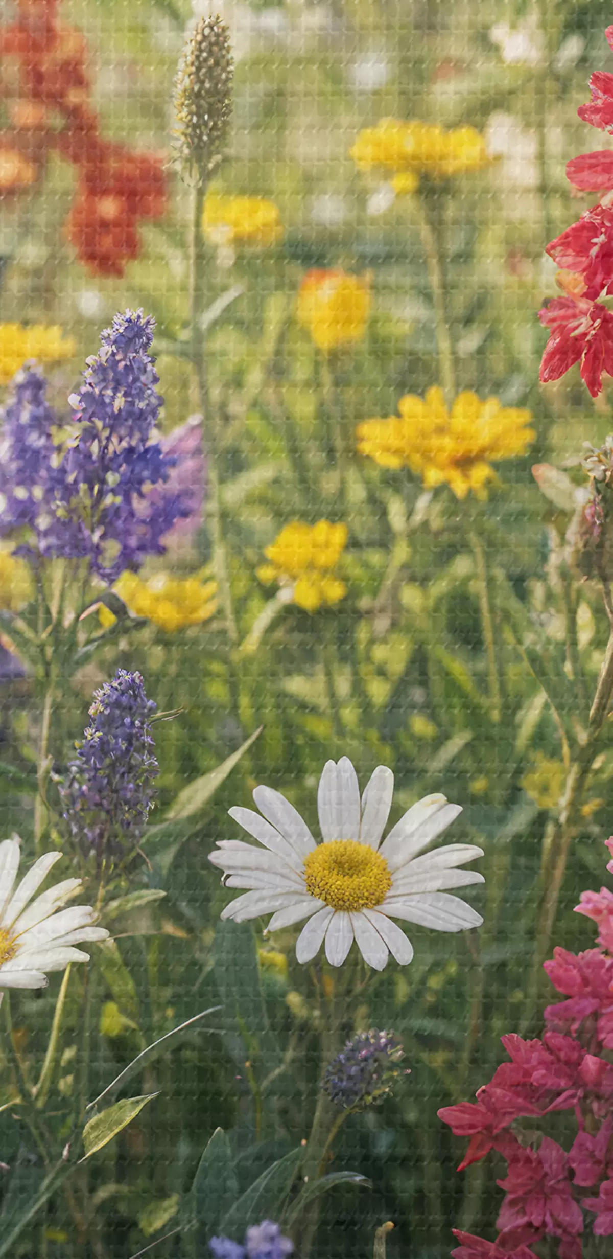 Tablouri O pajiște colorată cu flori sălbatice, cu diverse flori înflorite, inclusiv margarete, lavandă și flori roșii s40390
