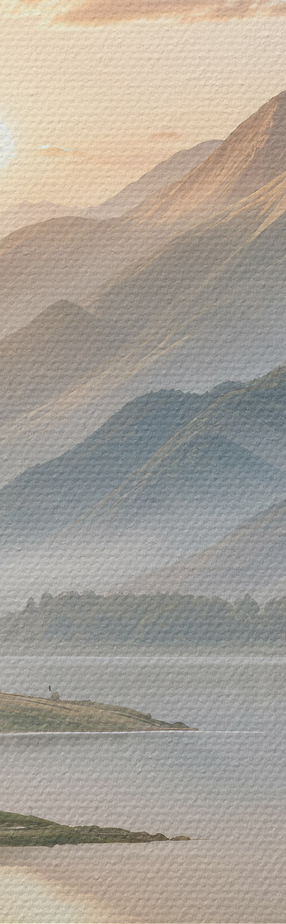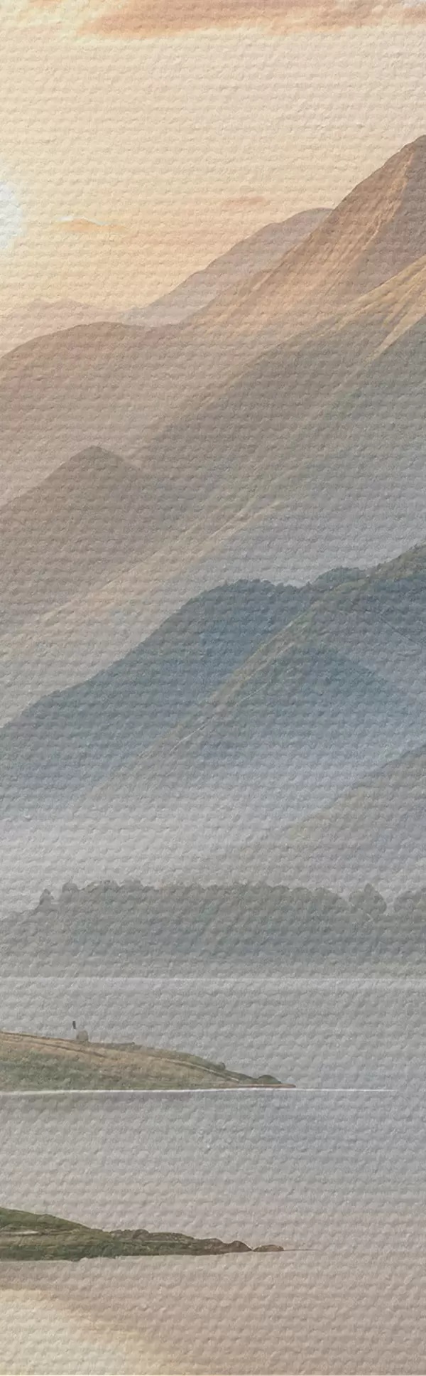 Pictură pe pânză Un peisaj senin cu un lac care reflectă munții în fundal cu o barcă mică pe apa calmă Nr s40391