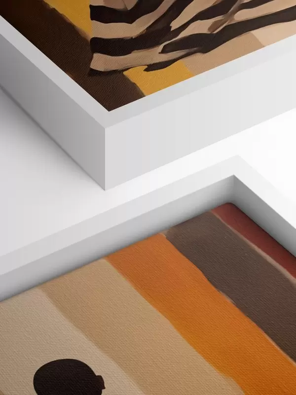 Pictură pe pânză Siluetă a unei femei afro-americane într-o pelerină în dungi pe un fundal cu dungi verticale, negru, bej, galben, roșu, maro Nr s40487