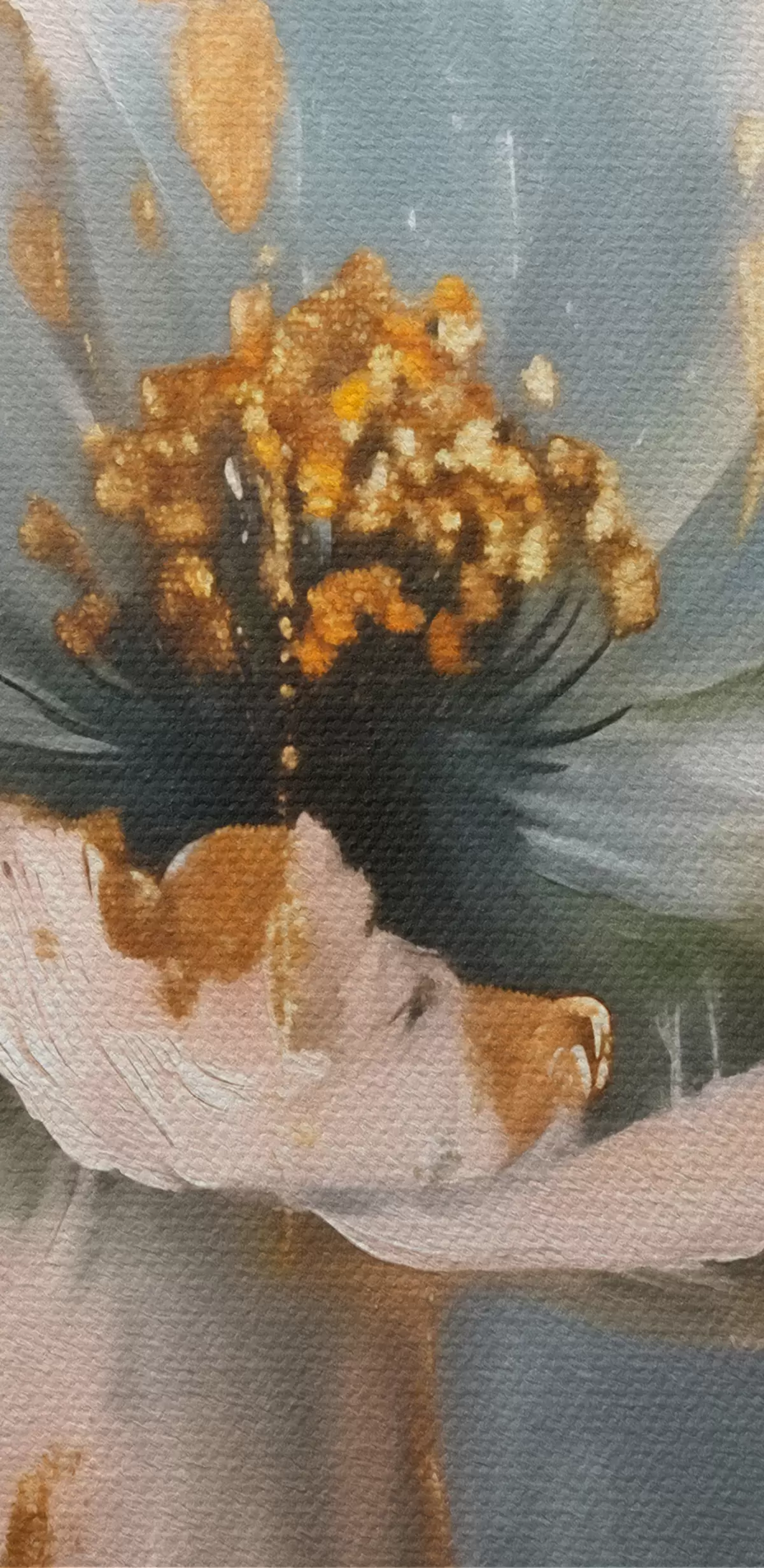 Țesătura fină a firelor de pe această pânză seamănă cu suprafața pânzelor artiștilor profesioniști.