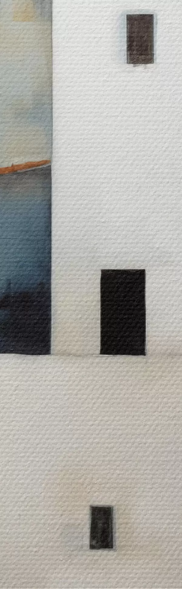 Pictură pe pânză Case albe stilizate abstracte, rosu, portocaliu, galben, albastru Nr s40531