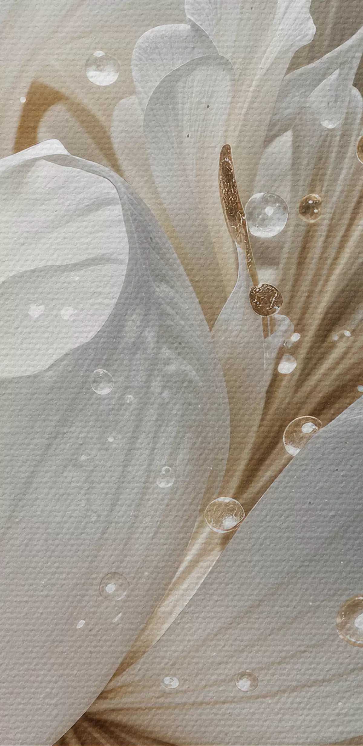 Pictură pe pânză Un prim plan al unei flori de bujor alb cu picături de apă pe petale, pe un fundal neclar Nr s40539