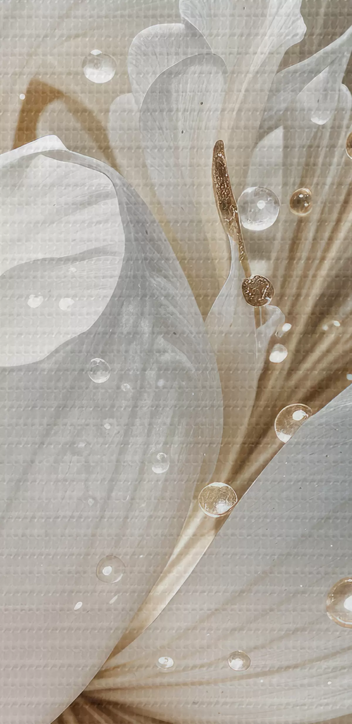 Tablouri Un prim plan al unei flori de bujor alb cu picături de apă pe petale, pe un fundal neclar s40539