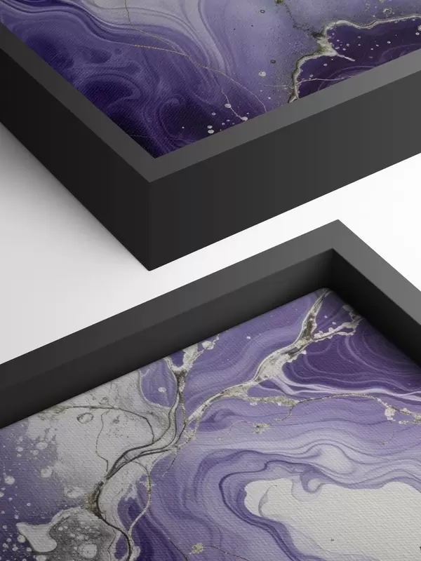 Pictură pe pânză Imprimare abstract compoziție de artă fluidă cu cerneală învolburată violet, albă și gri Nr s40566