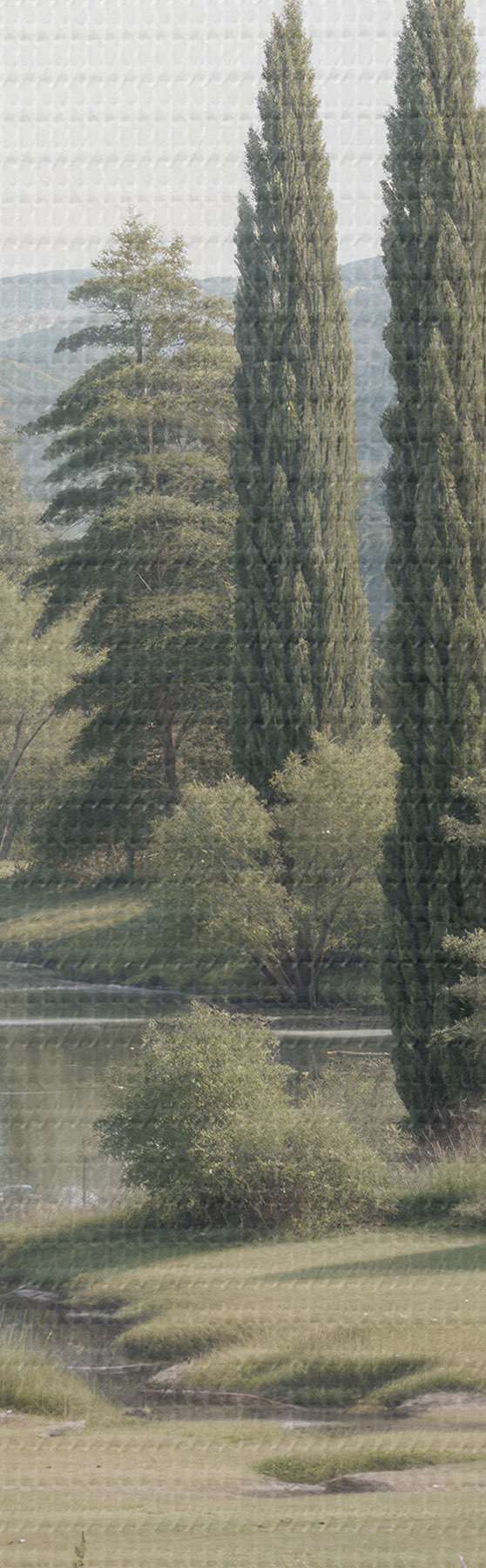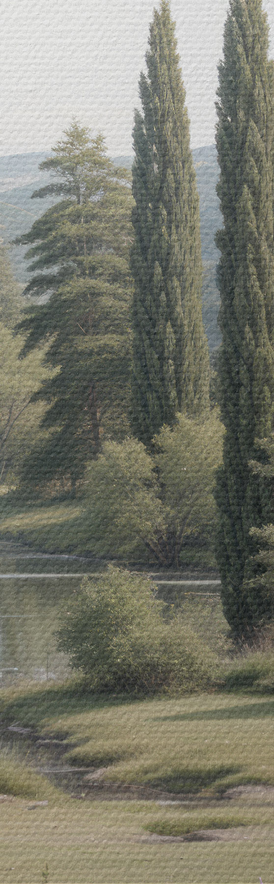 Pictură pe pânză Un peisaj senin cu un lac liniștit înconjurat de pini, chiparoși și altă vegetație luxuriantă Nr s40579