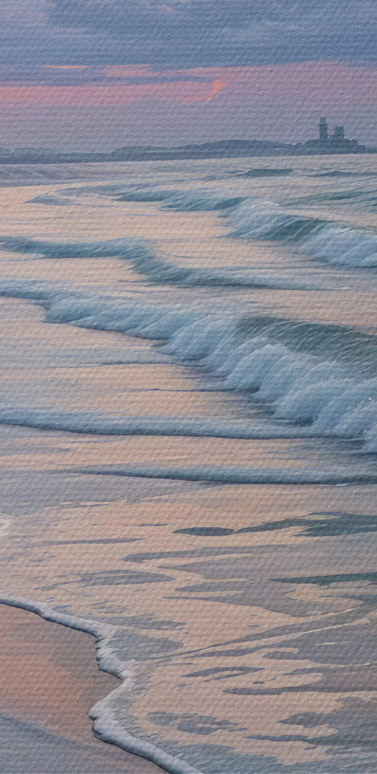 Pictură pe pânză O scenă de plajă senină la apusul soarelui, cu valuri blânde lovindu-se de țărmul nisipos Nr s40606