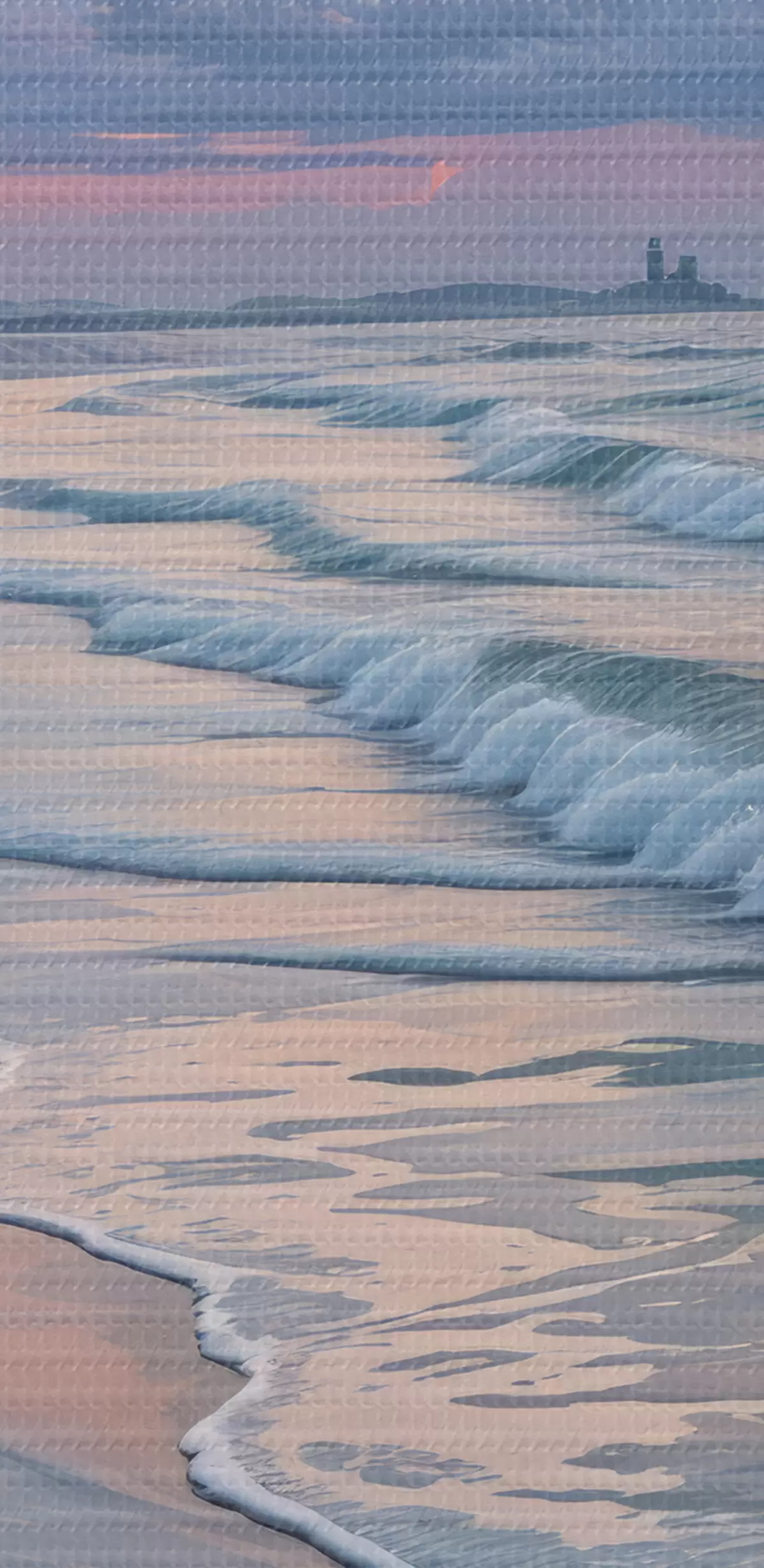 Tablouri O scenă de plajă senină la apusul soarelui, cu valuri blânde lovindu-se de țărmul nisipos s40606