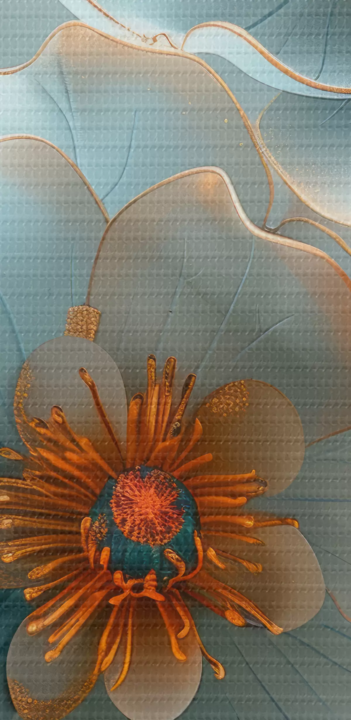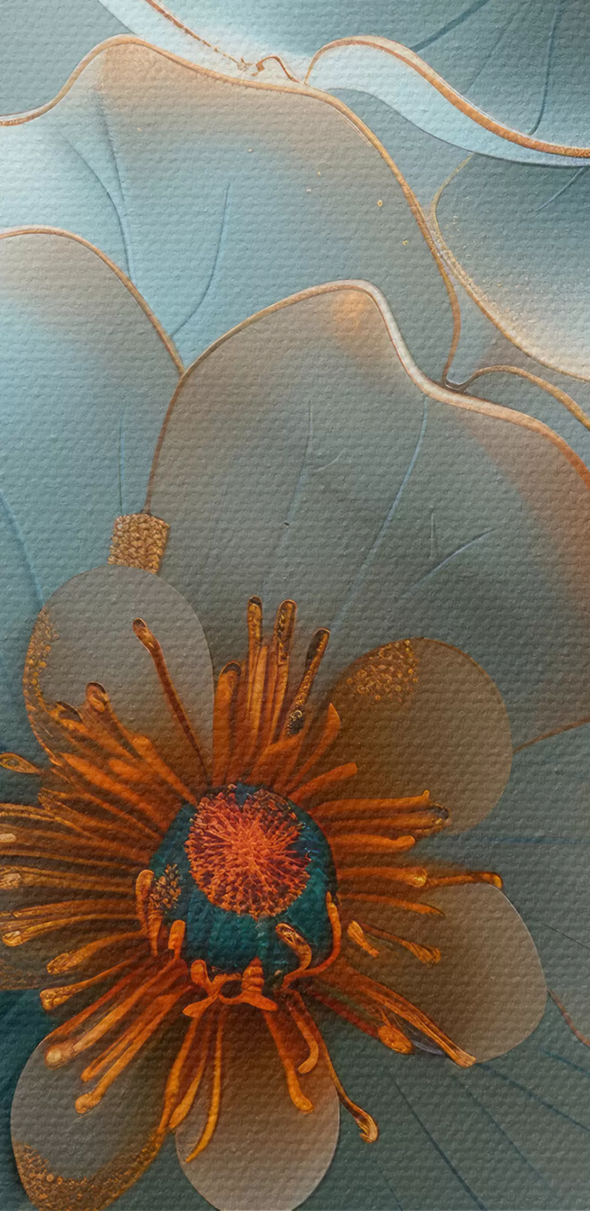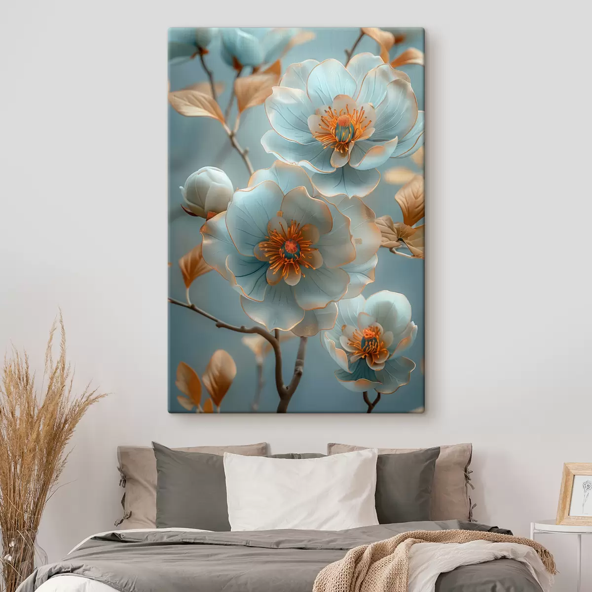 Pictură pe pânză Peonii albastre cu accent portocaliu Nr s40676