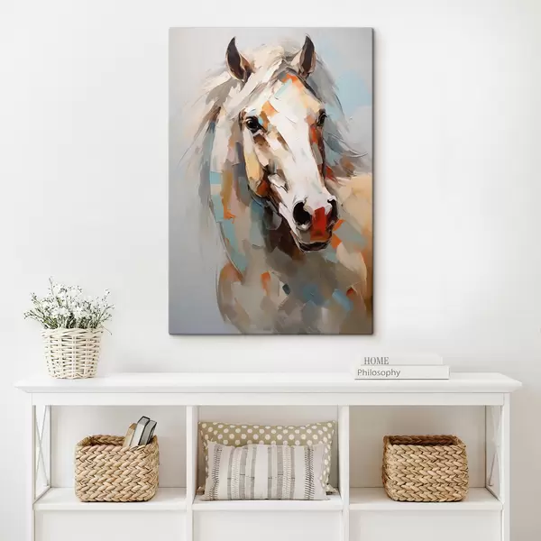 Pictură pe pânză Portret abstract al unui cal alb Nr s40686