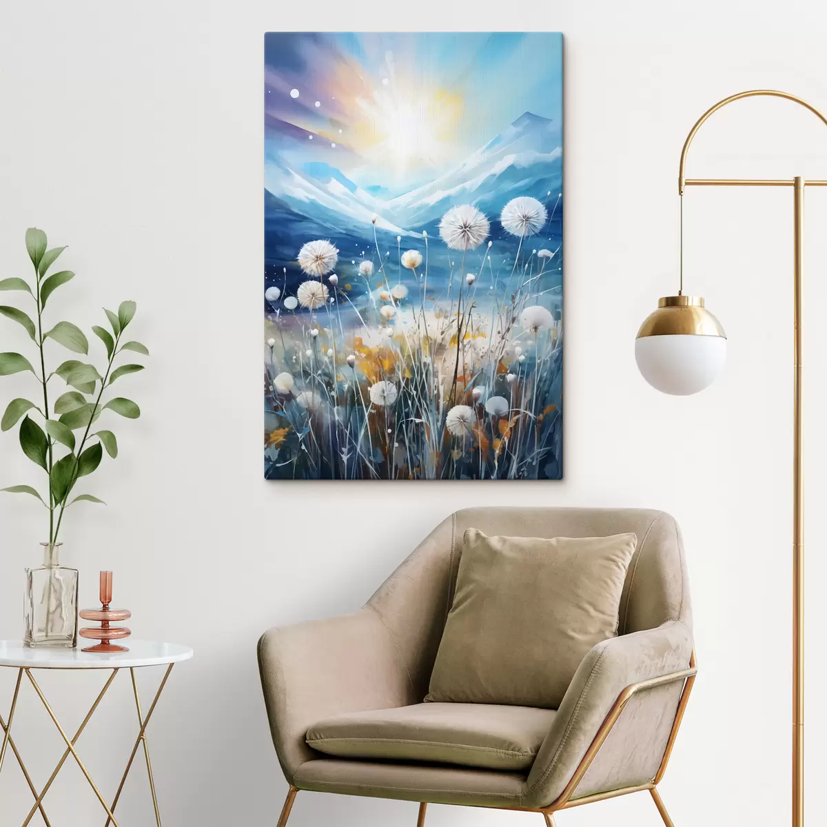 Tablouri Munți luminați de soare și flori de păpădie s40720