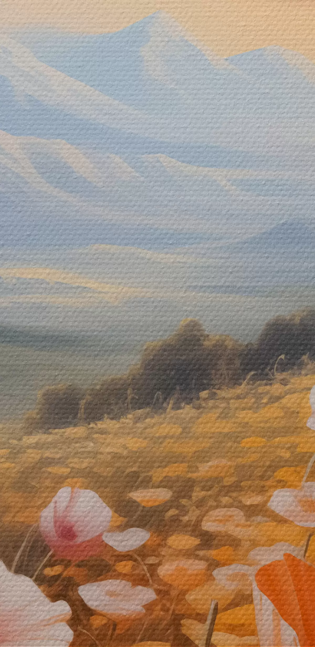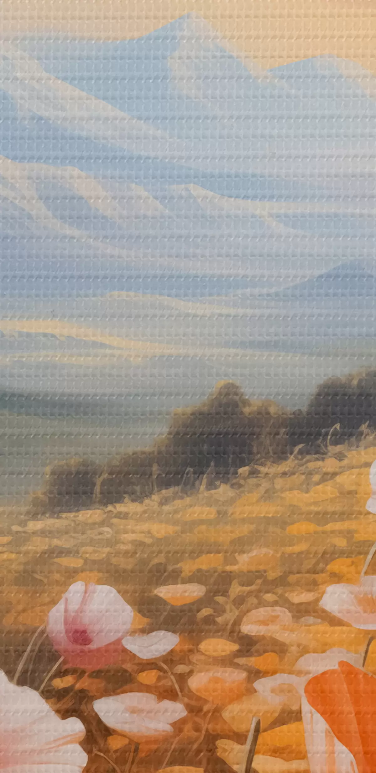 Pictură pe pânză Câmpul de maci în zori cu munții în fundal Nr s40730