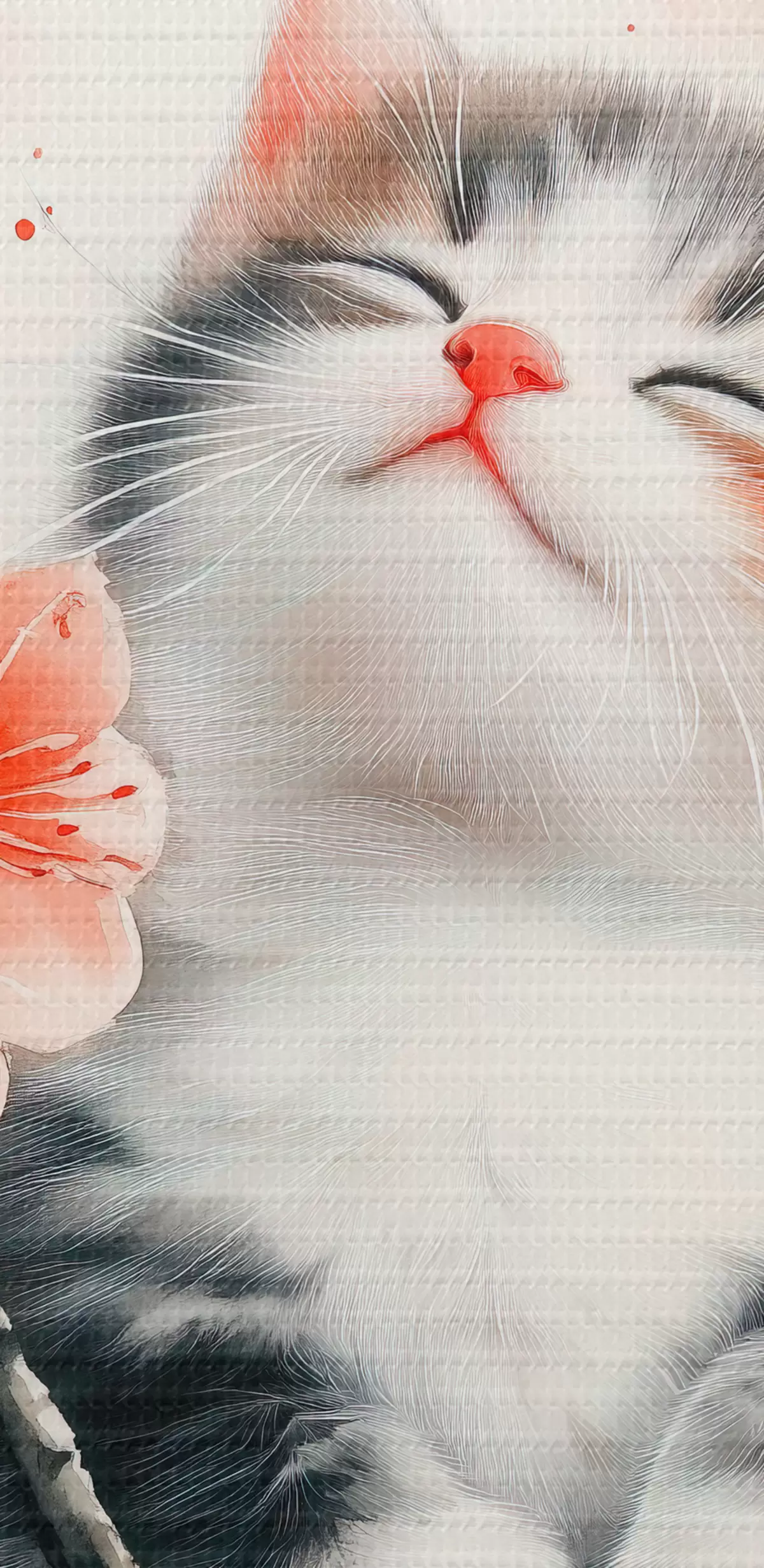 Pictură pe pânză Pisoi drăguț pe o ramură cu flori Nr s40734