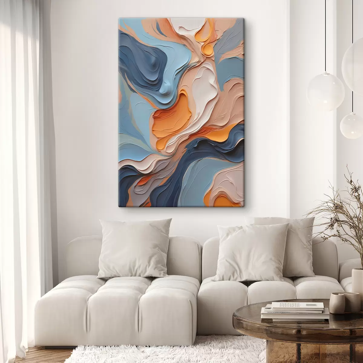 Tablouri Abstracție în nuanțe de albastru și portocaliu cu textură de imitație s40743