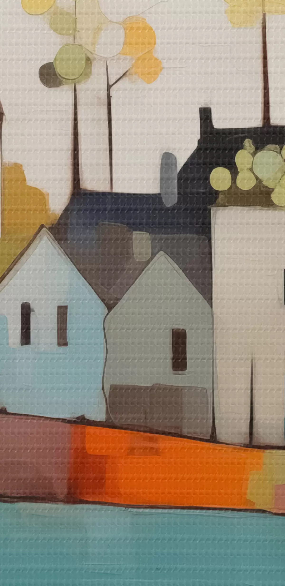 Pictură pe pânză Abstract oraș și case, albastru, galben, roșu culoare Nr s40751