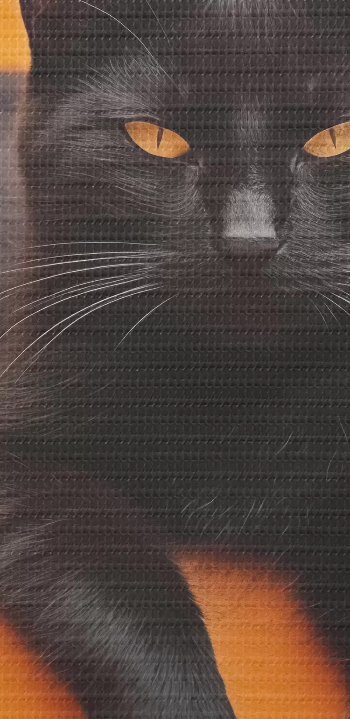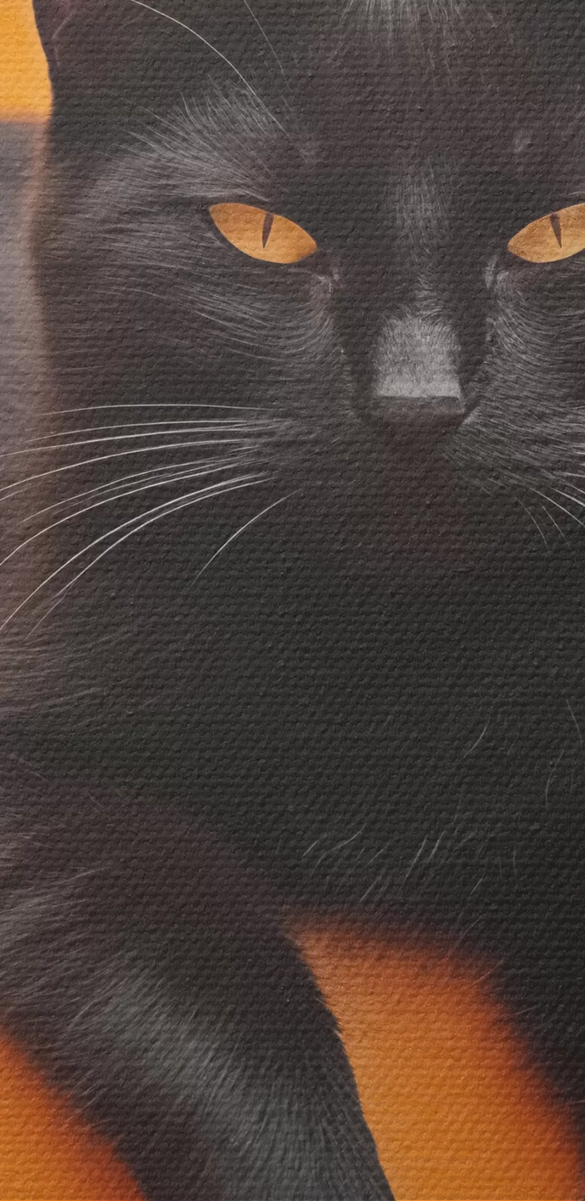 Pictură pe pânză O pisică neagră zace pe trepte galbene Nr s40798