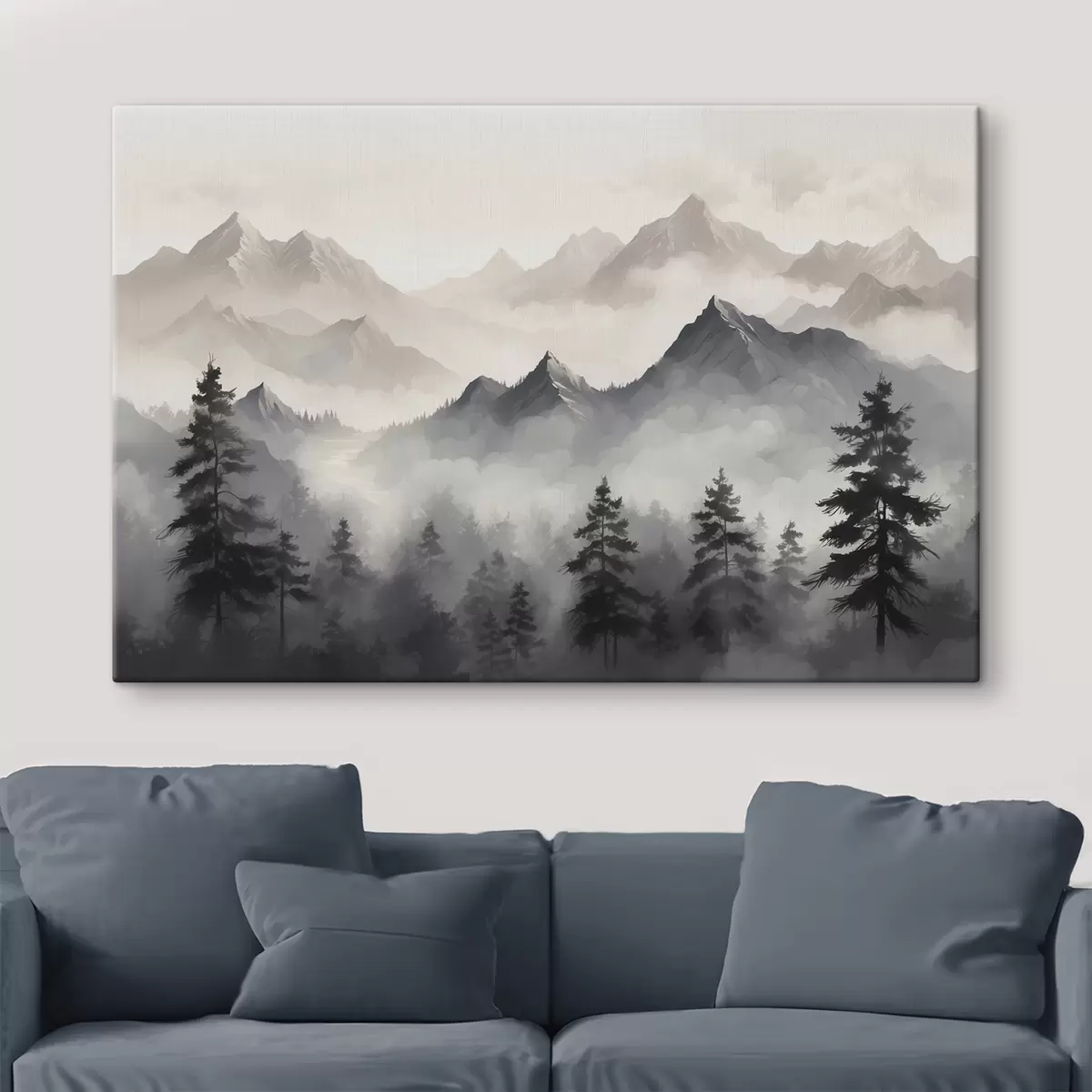 Pictură pe pânză Pădure și munți în ceață Nr s40866