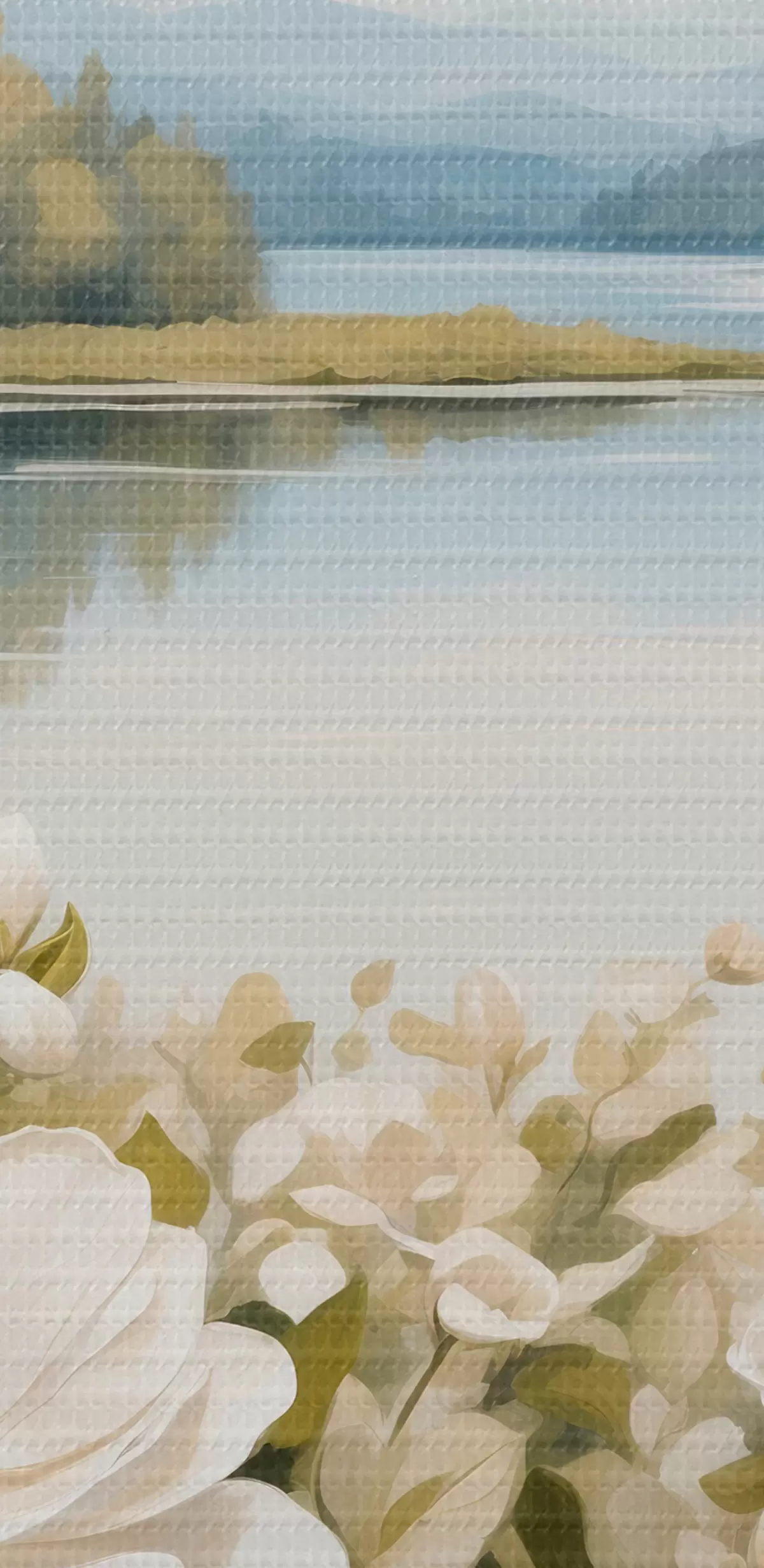 Pictură pe pânză Flori albe pe fundal de râu Nr s40869