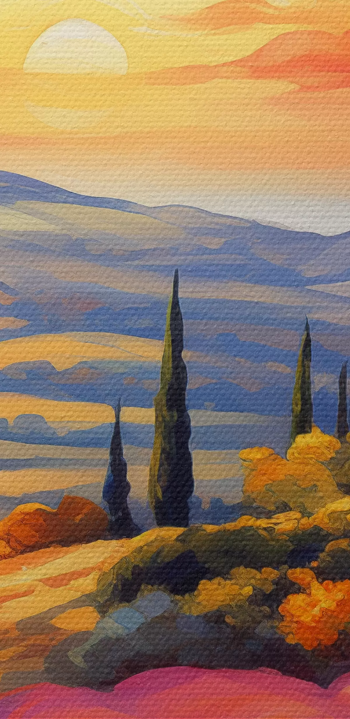 Pictură pe pânză Toscana apus de soare, câmpuri de lavandă, peisaje frumoase, acuarelă Nr s40942