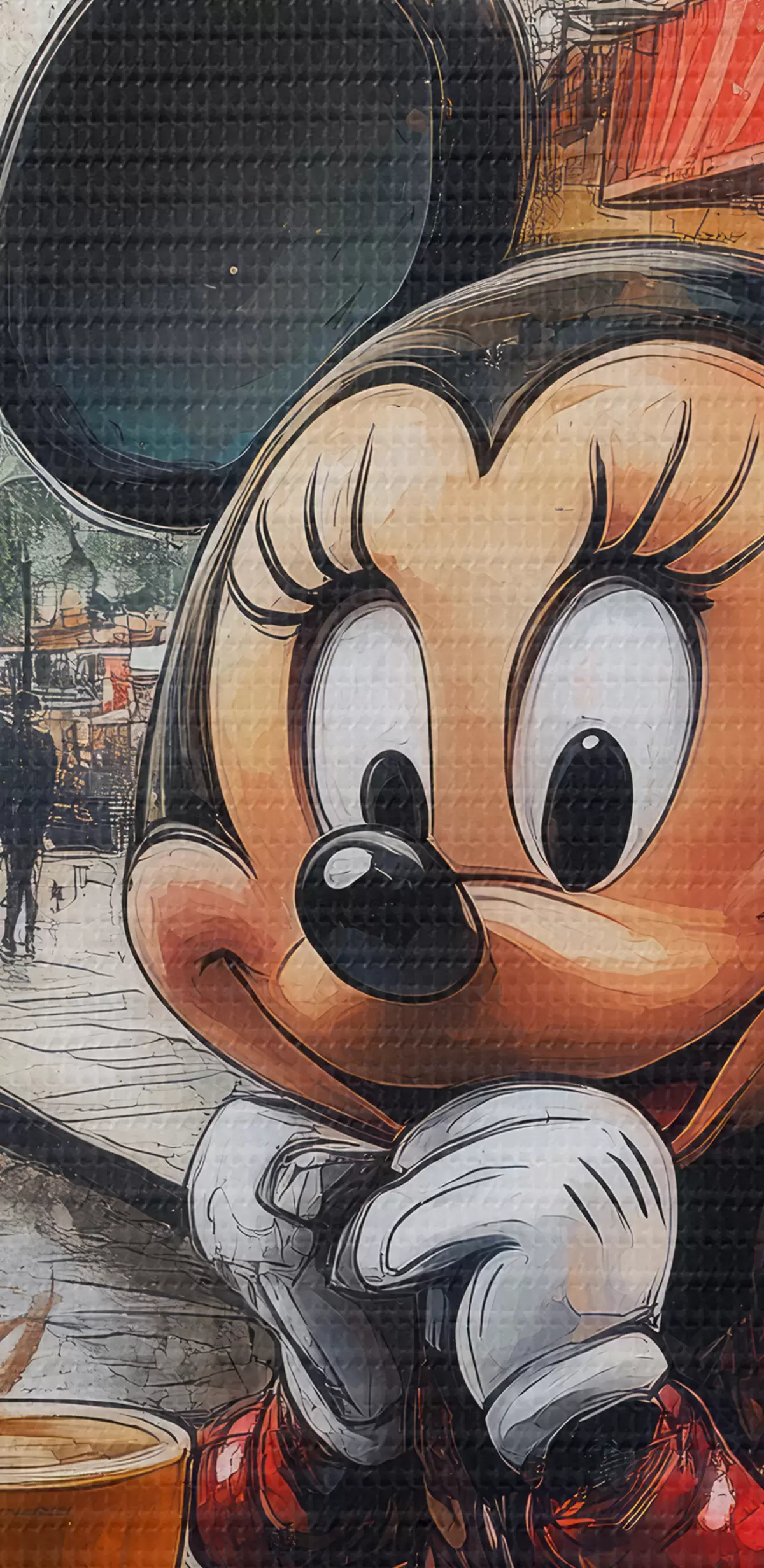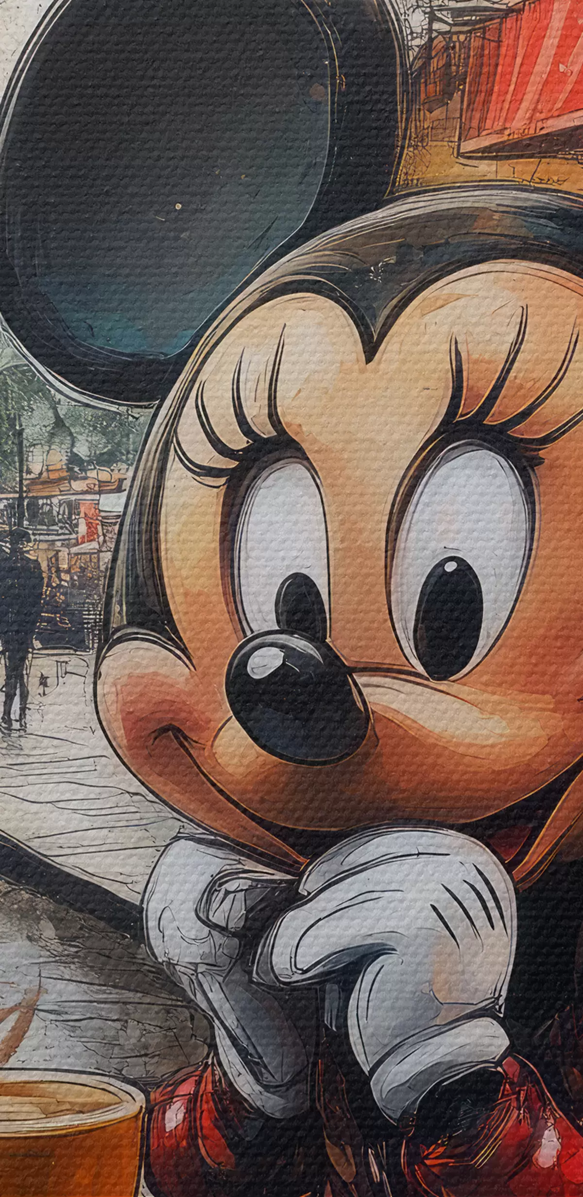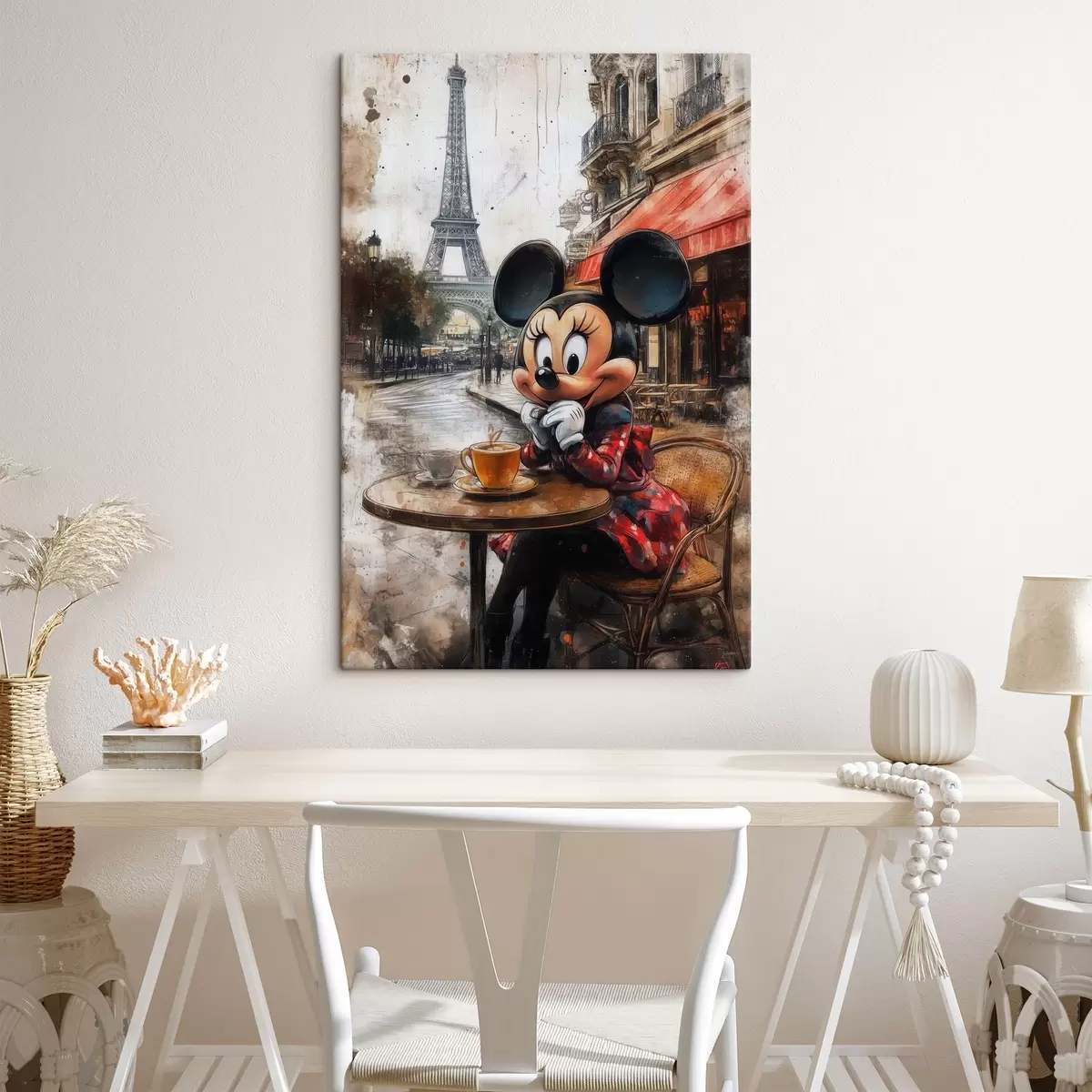 Pictură pe pânză Fata Mickey Mouse bea cafea lângă Turnul Eiffel din Paris Nr s40972