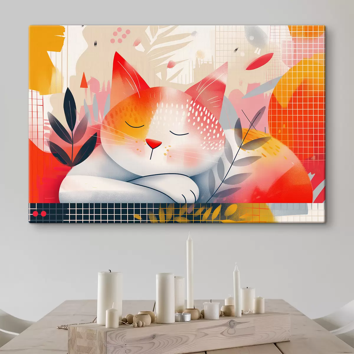 Pictură pe pânză O pisică drăguță care doarme pe podea printre flori colorate Nr s40981