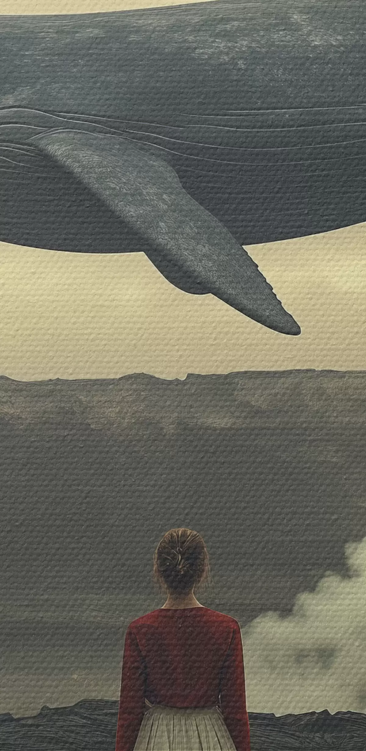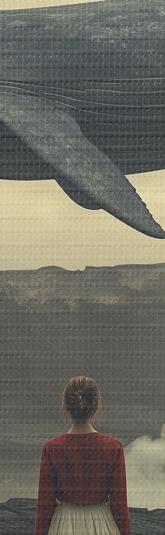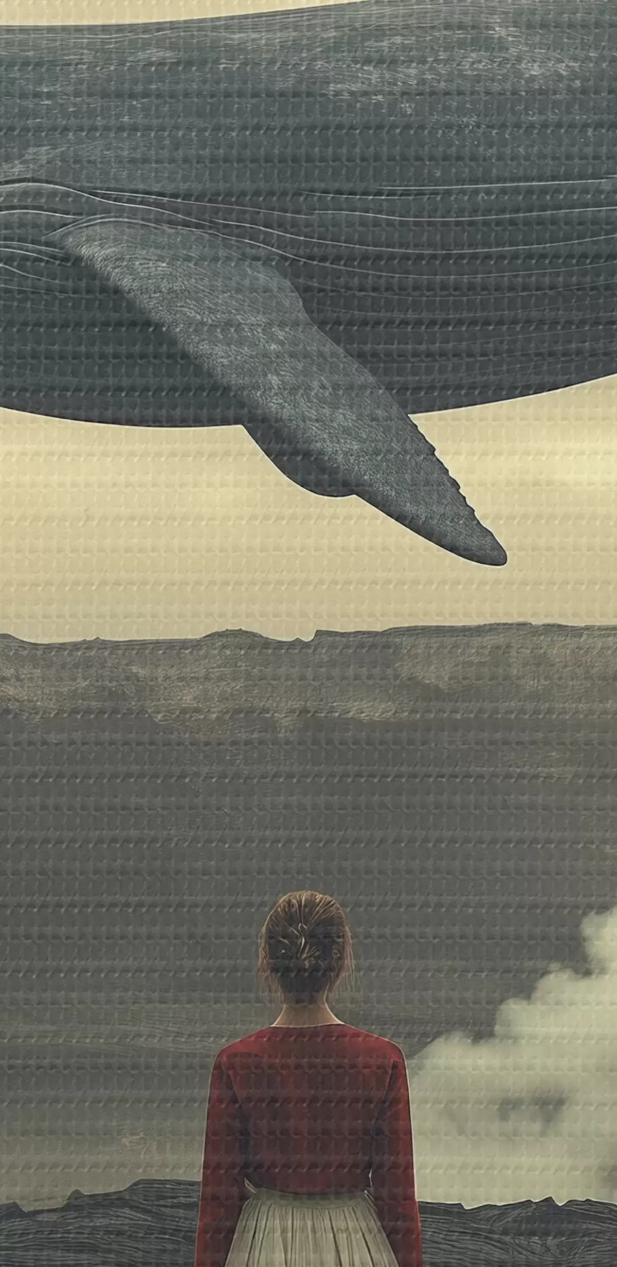 Tablouri Fată pe lavă cu o balenă zburătoare mare pe cer s40986