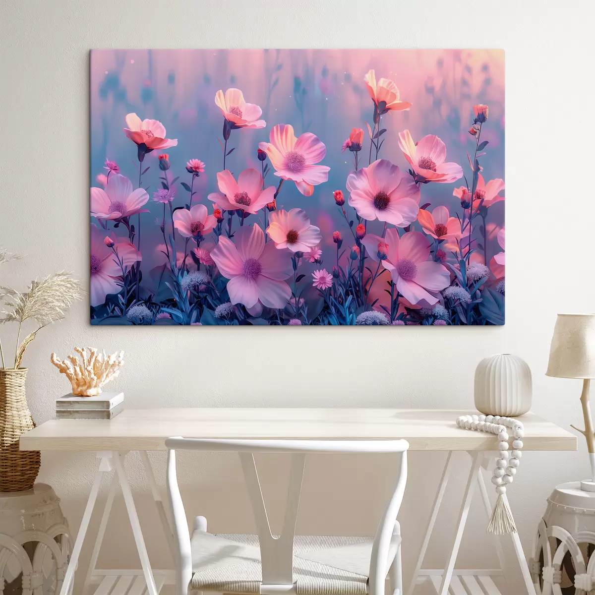 Pictură pe pânză Flori sălbatice de basm în nuanțe de roz și albastru Nr s40990